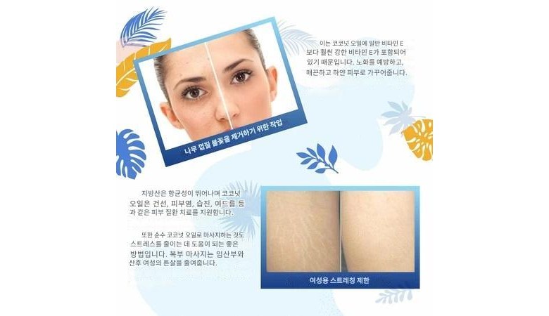순수 함유 성분: 99% 순수 코코넛 오일, 비타민 E.
