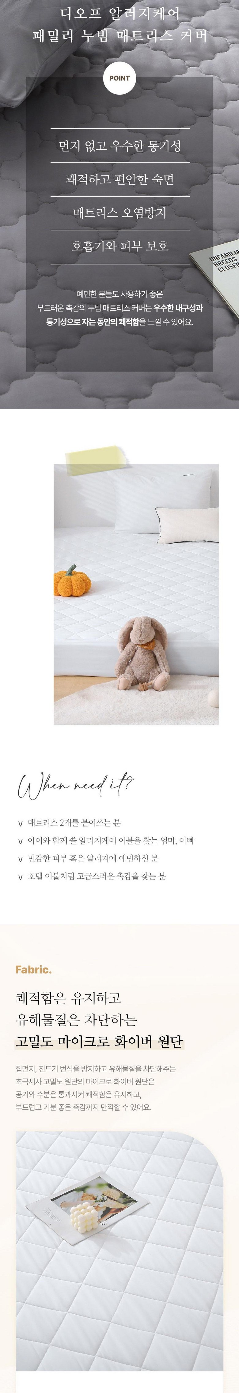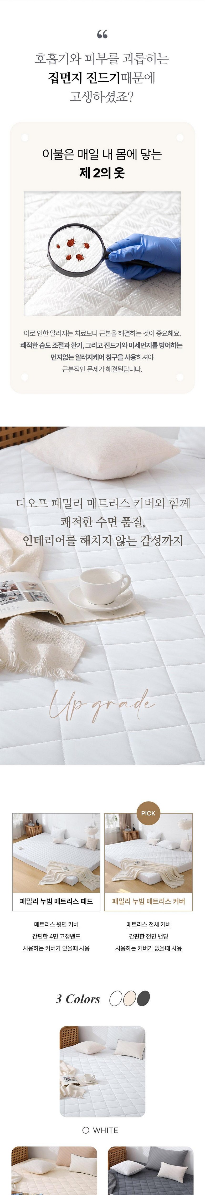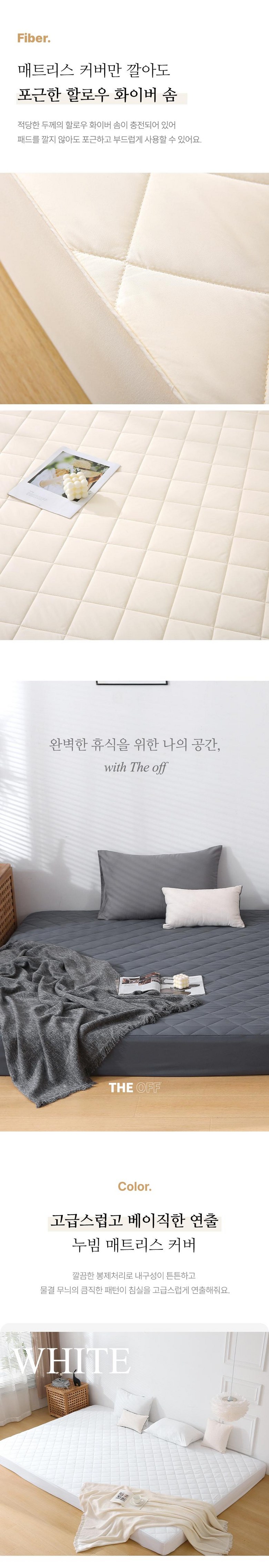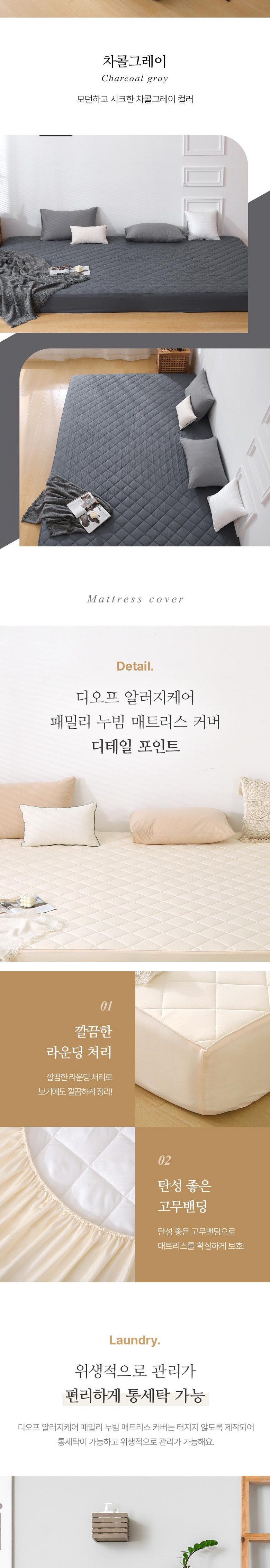 | 치수 | SS+SS 220 x 200 x 40 cm / SS+Q 260 x 200 x 40 cm / Q+Q 300 x 200 x 40 cm | 제품구성 | 매트리스 커버 1장 |