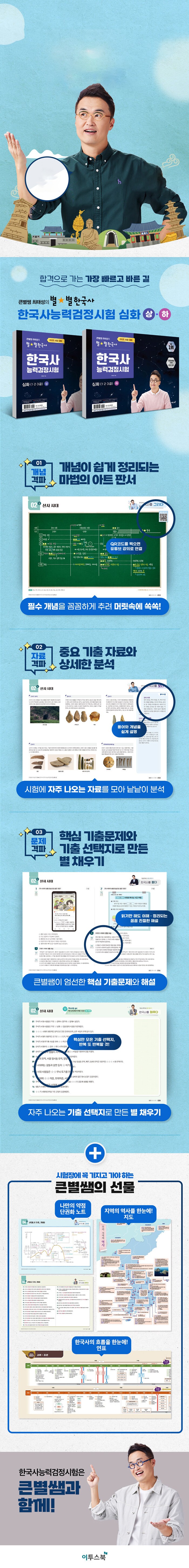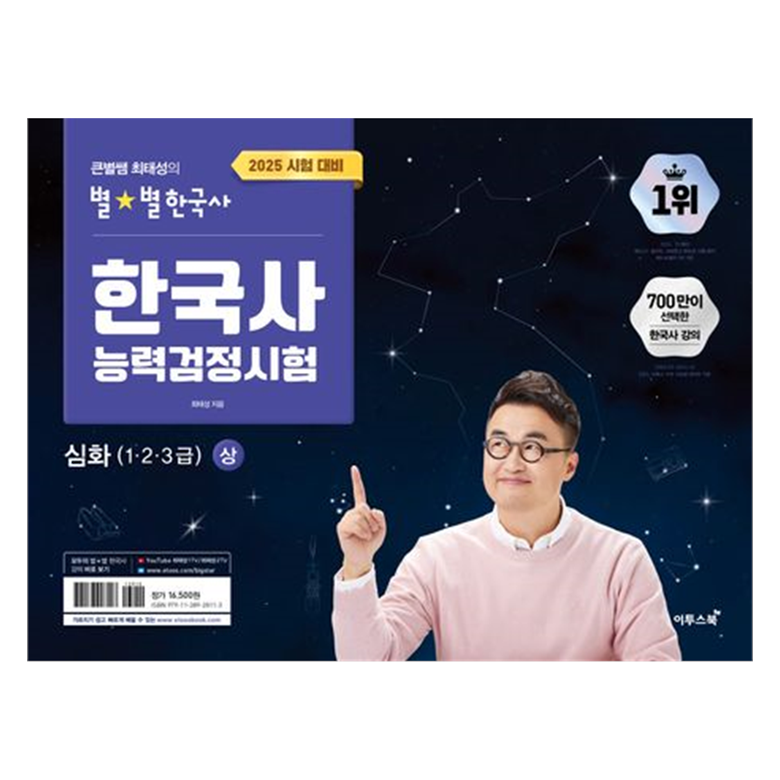 | 도서명 | 2025 큰별쌤 최태성의 별★별한국사 한국사능력검정시험 심화(1, 2, 3급) 상 | 저자, 출판사 | 최태성, 이투스북 |