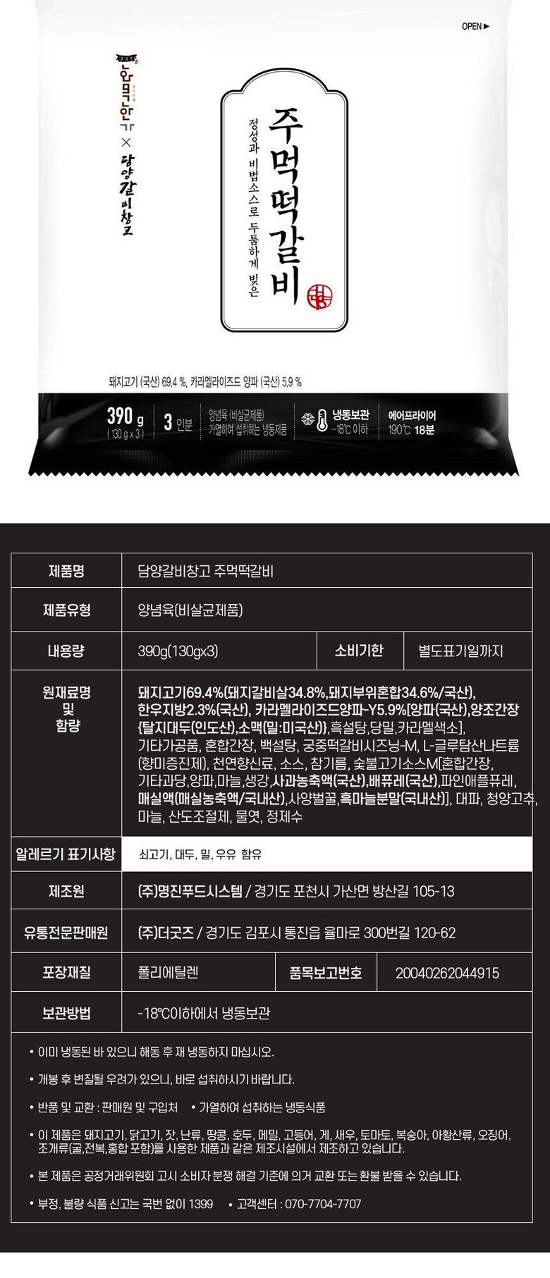 | 제조연월일, 소비기한 또는 품질유지기한 | 상품 상세페이지 참조 | 세부 품목군별 표시사항 | 상품 상세페이지 참조 |