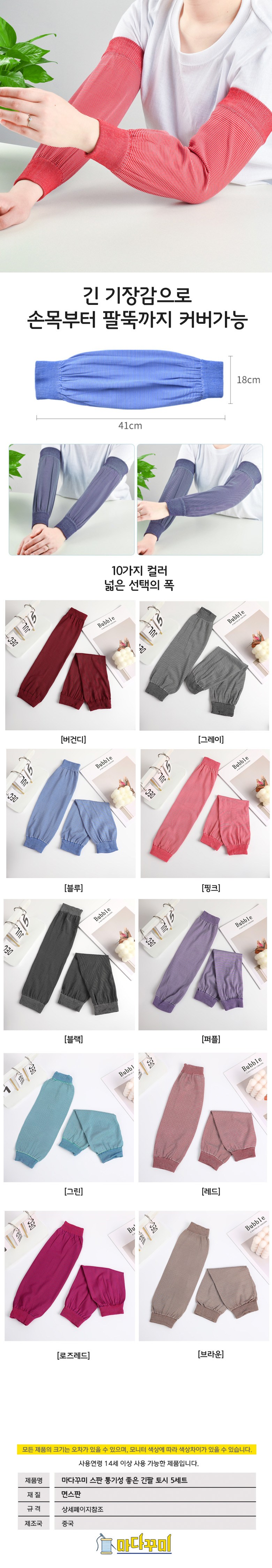 | 품명 및 모델명 | 마다꾸미 스판 통기성 좋은 긴팔 토시 5세트 [그레이] | 인증/허가 사항 | 해당없음(14세 이상) |