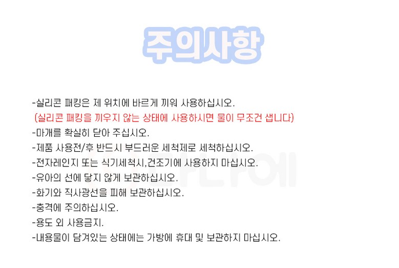 | 품명 및 모델명 | 라벨 & 상세이미지와 동일하게 기재해주세요 | 재질 | PP+실리콘+316+304 |