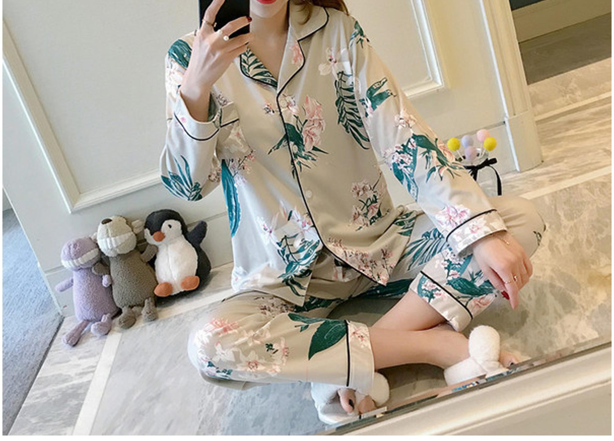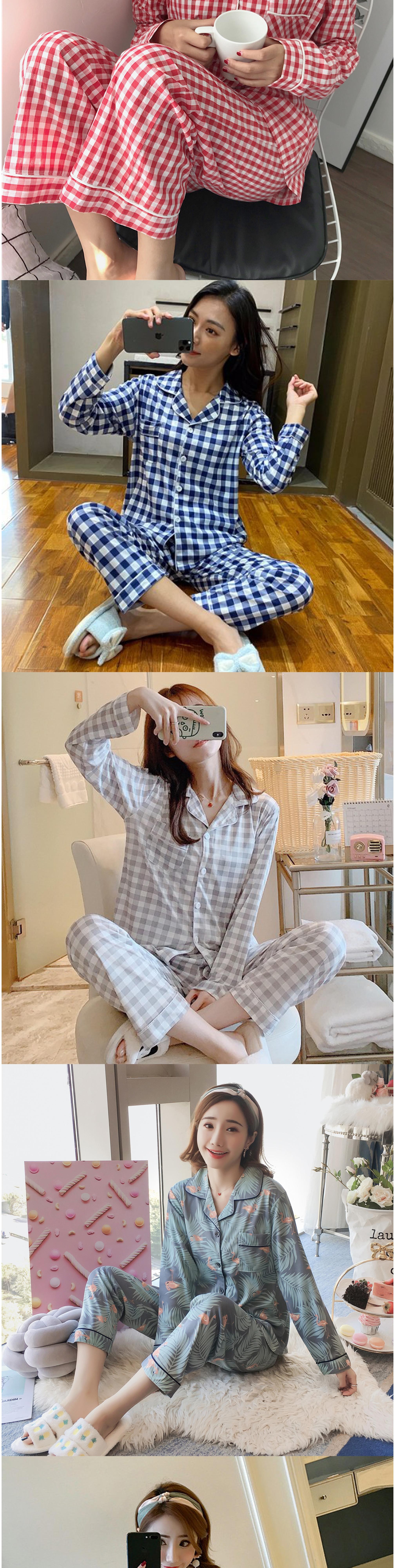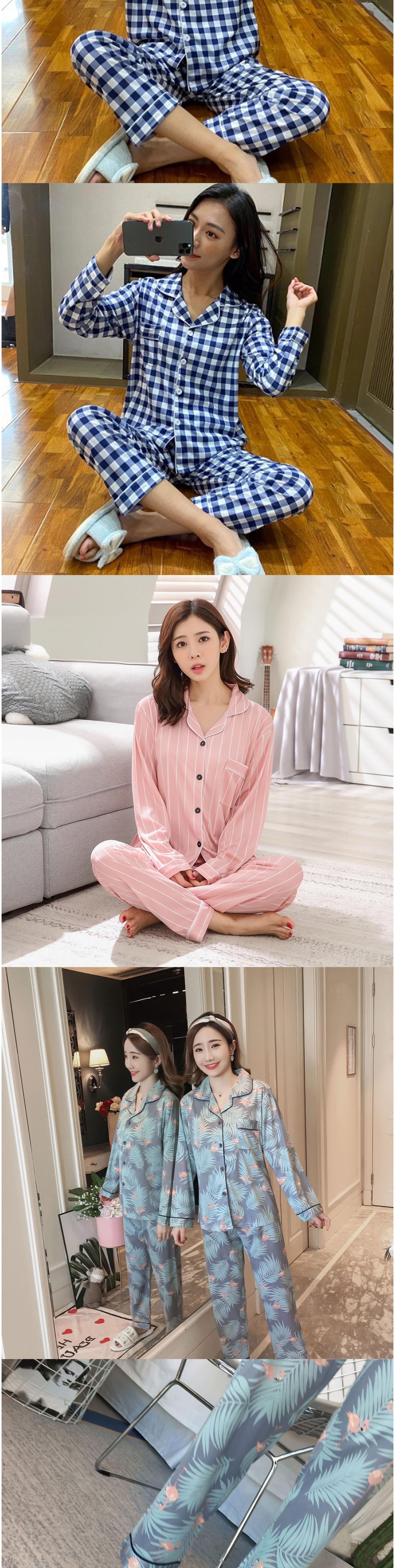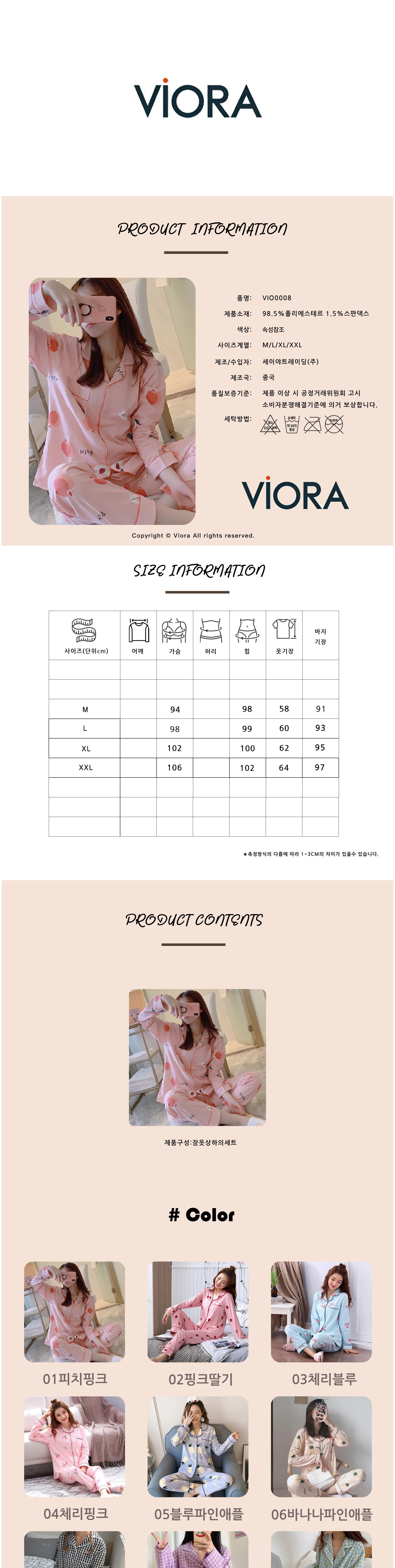 비올라 여성용 홈웨어 긴팔 상의 + 긴바지 잠옷 세트 ViO0008