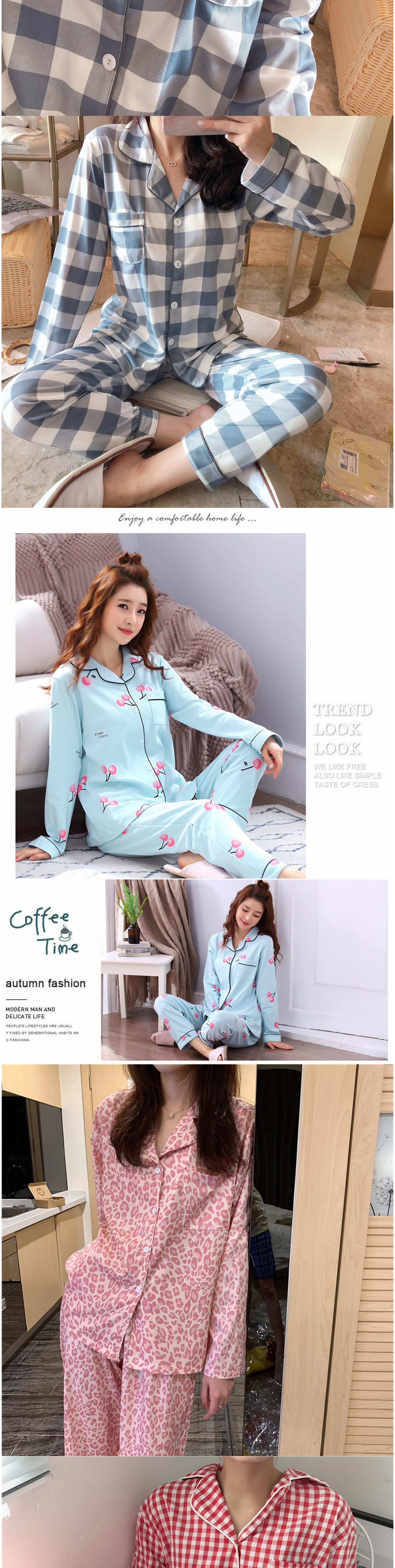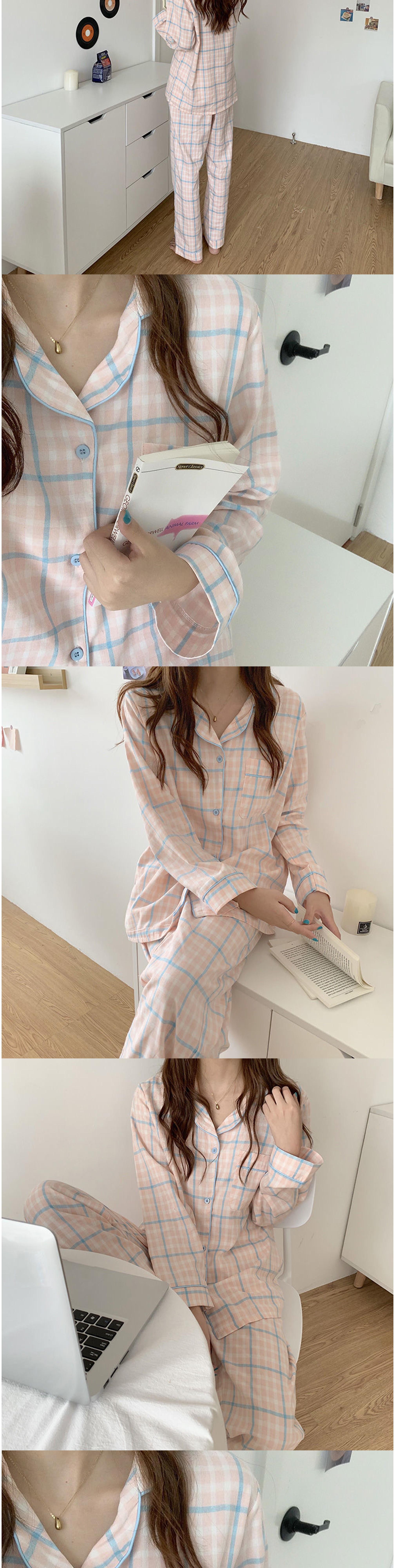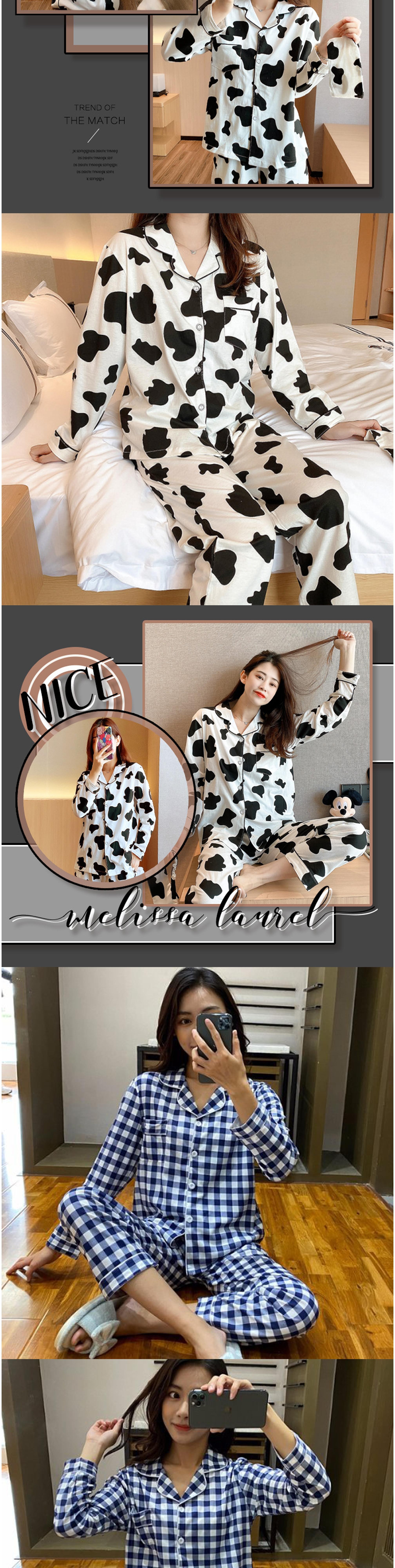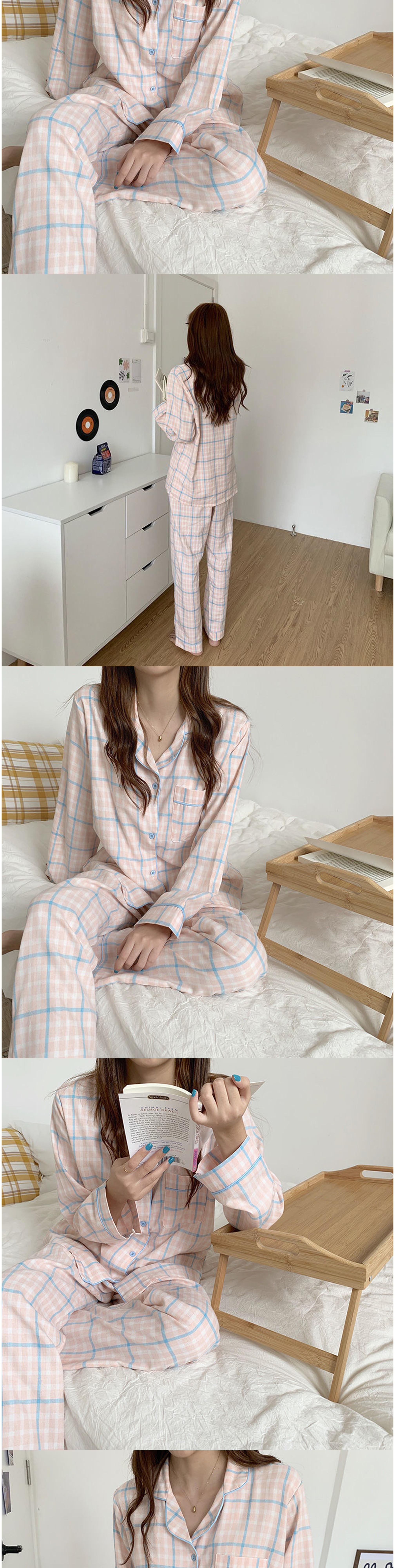 비올라 여성용 홈웨어 긴팔 상의 + 긴바지 잠옷 세트 ViO0008
