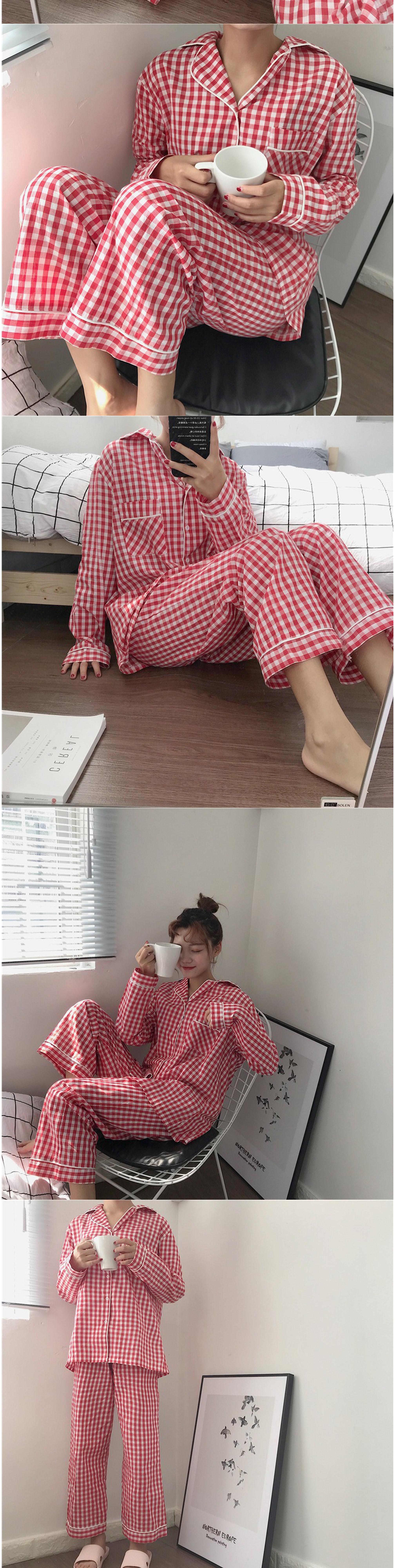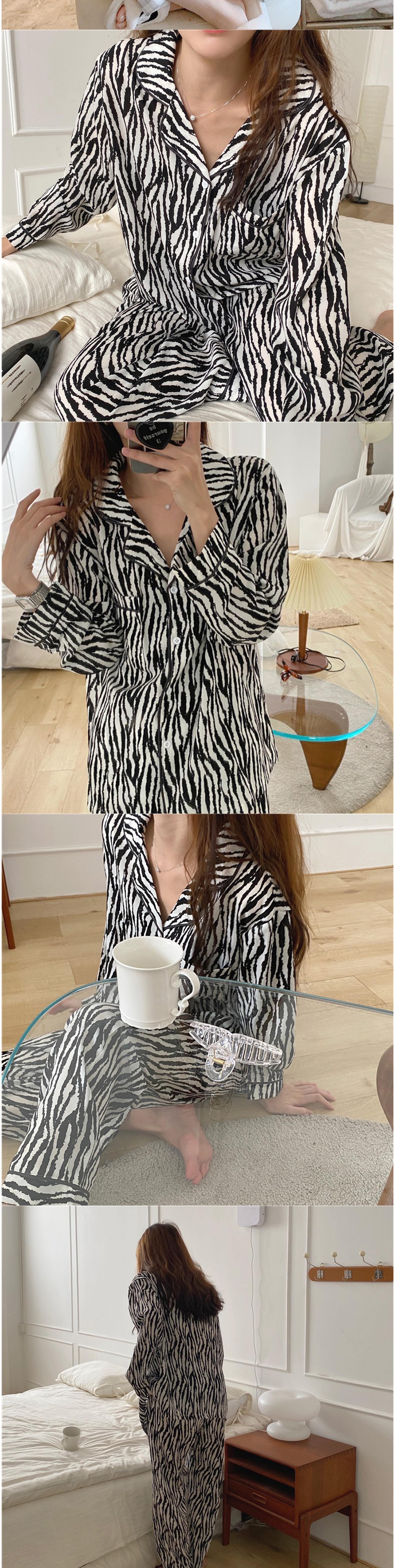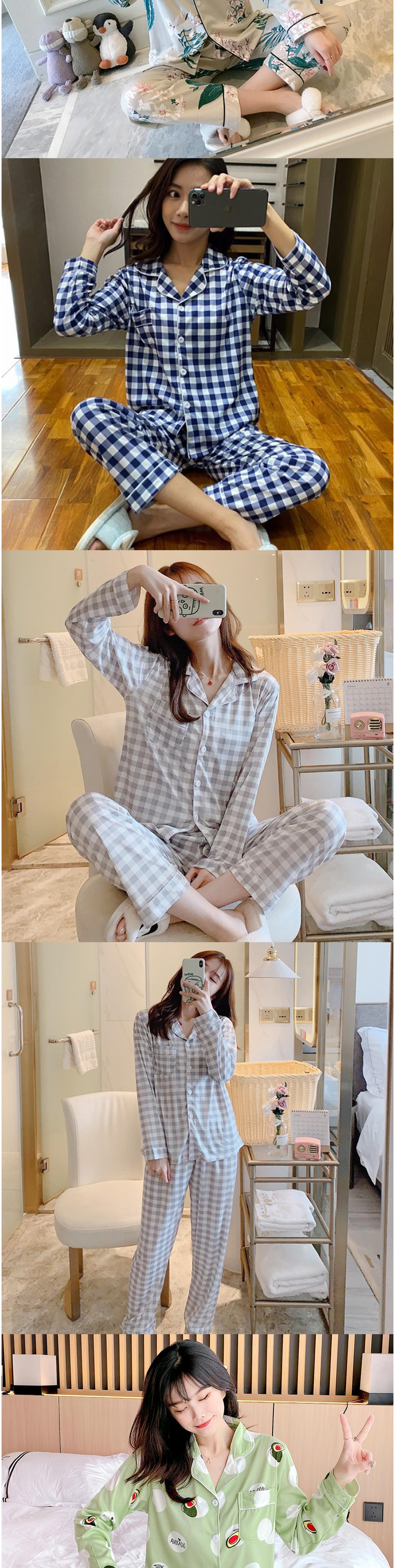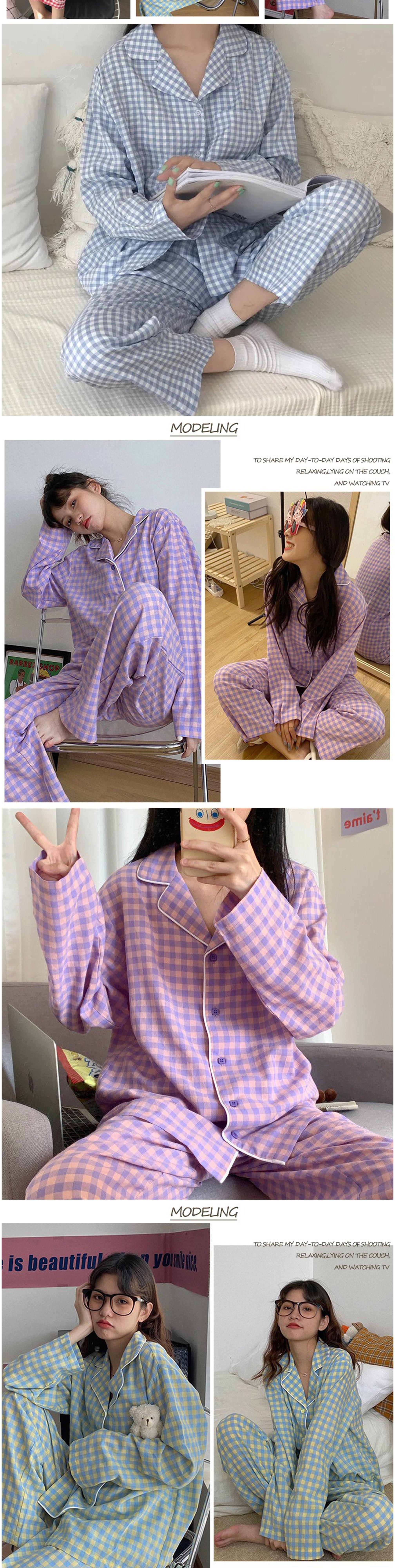 비올라 여성용 홈웨어 긴팔 상의 + 긴바지 잠옷 세트 ViO0008