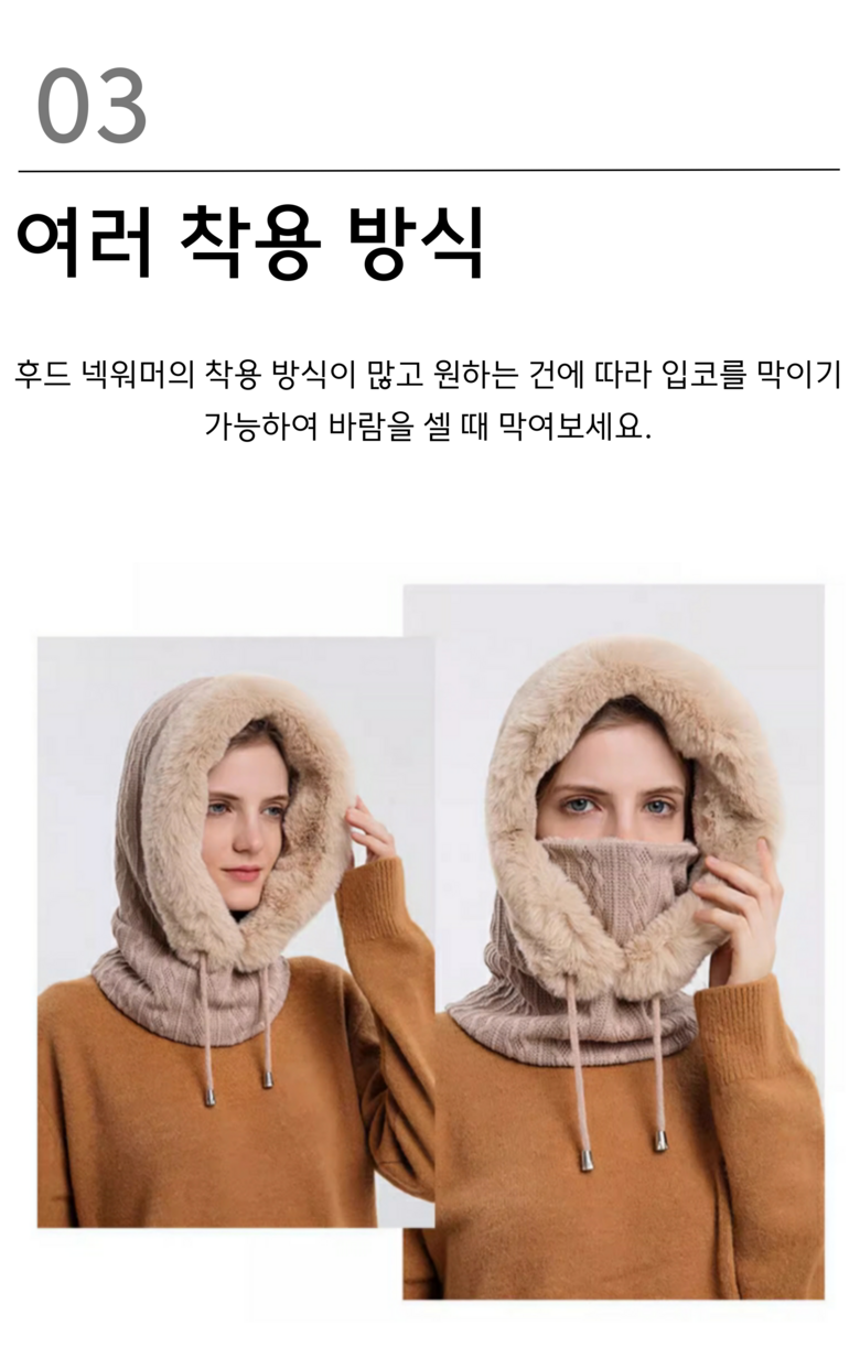 | 종류 | 리빙가감법 겨울 여성 기모 안감 니트 롱 후드 넥워머 | 소재 | 테릴렌 |