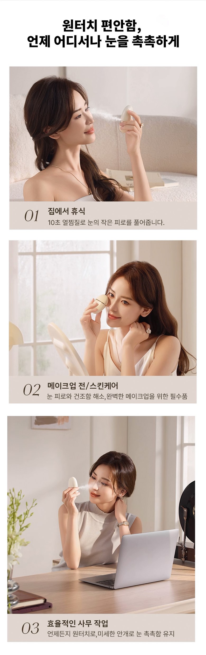 본 제품의 온열 기능은 작동 후 약 1분 정도의 예열 시간이 필요합니다.