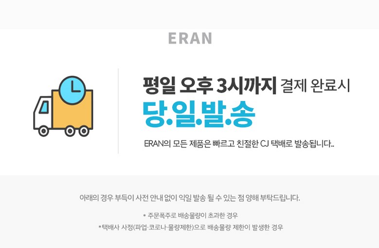 - ㆍ모니터 해상도의 차이로 인해 색상이나 이미지가 실제와 달라, 고객이 단순 변심으로 교환/반품을 무료로 요청하는 경우
