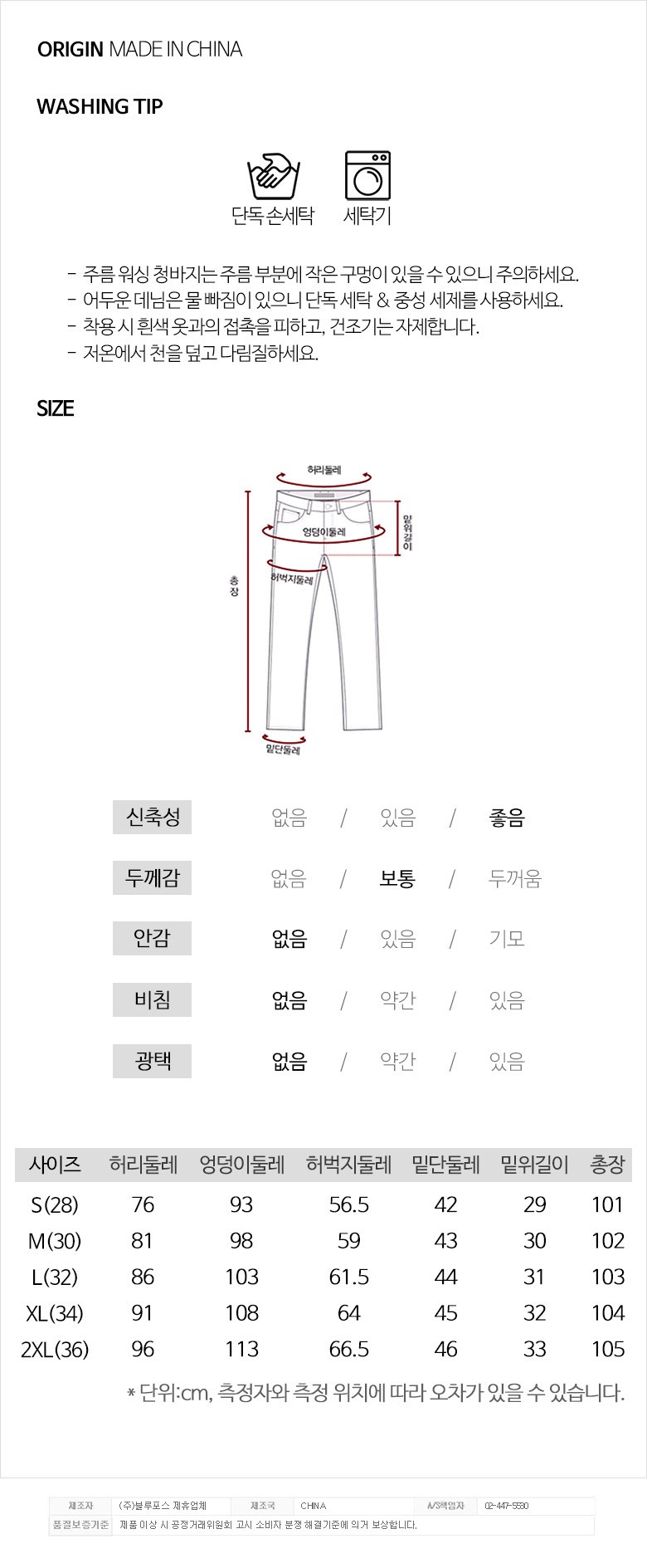 | 제조국 | 중국 | 세탁방법 및 취급시 주의사항 | 컨텐츠 참조 |