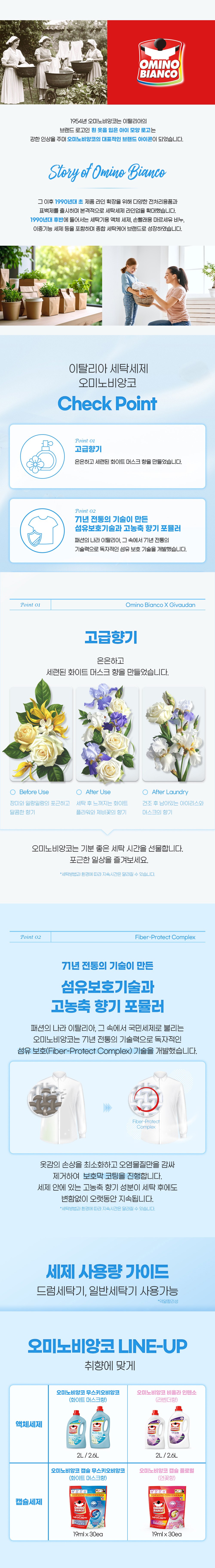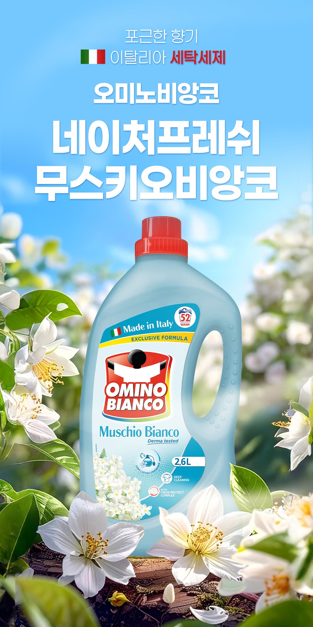 | 품목 및 제품명 | 세탁세제 / 오미노비앙코 네이처프레쉬 무스키오비앙코 | 용도(표백제의 경우 계열을 함께표시) 및 제형 | 섬유용, 신발용, 섬유 얼룩제거용 / 액체형 |