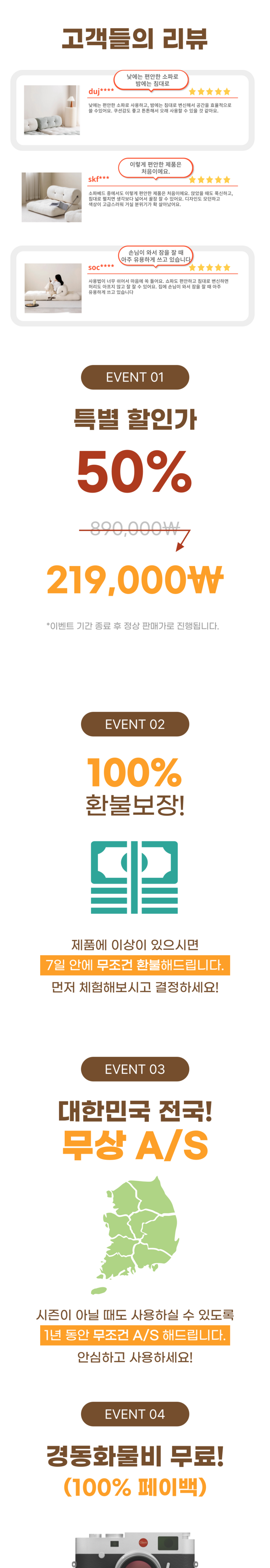 - ㆍ모니터 해상도의 차이로 인해 색상이나 이미지가 실제와 달라, 고객이 단순 변심으로 교환/반품을 무료로 요청하는 경우