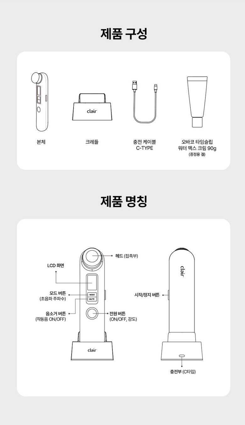 클레어 플렉소닉 듀얼 물방울 초음파 얼굴 마사지기단품