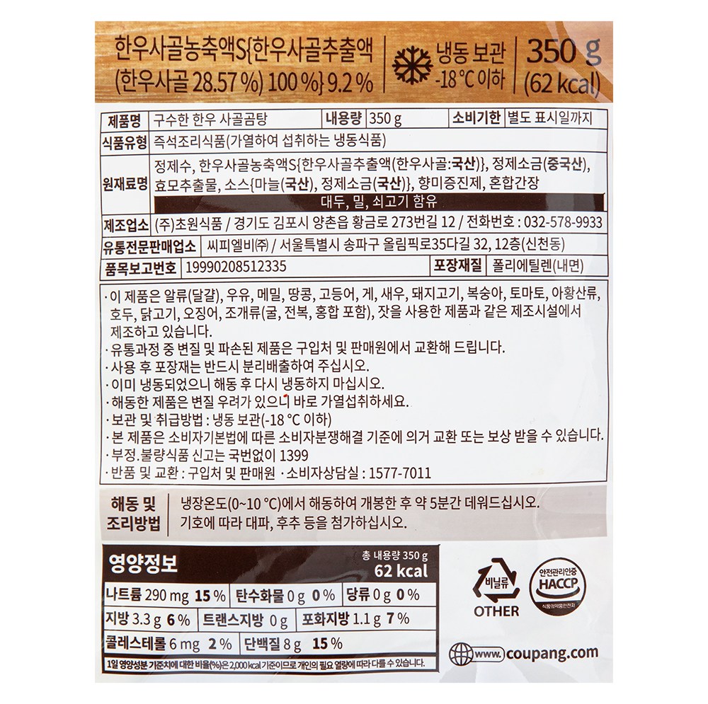 | 제품명 | 구수한 한우 사골곰탕 | 식품의 유형 | 즉석조리식품 |