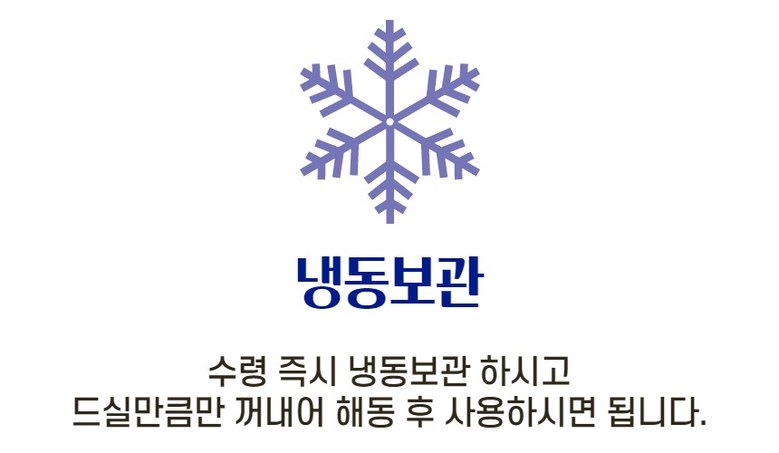 | 배송방법 | 신선/냉장/냉동 | 배송비 | 무료배송 · 도서산간 추가 배송비 - 제주 지역: 6,000원 - 도서산간 지역: 8,000원 |