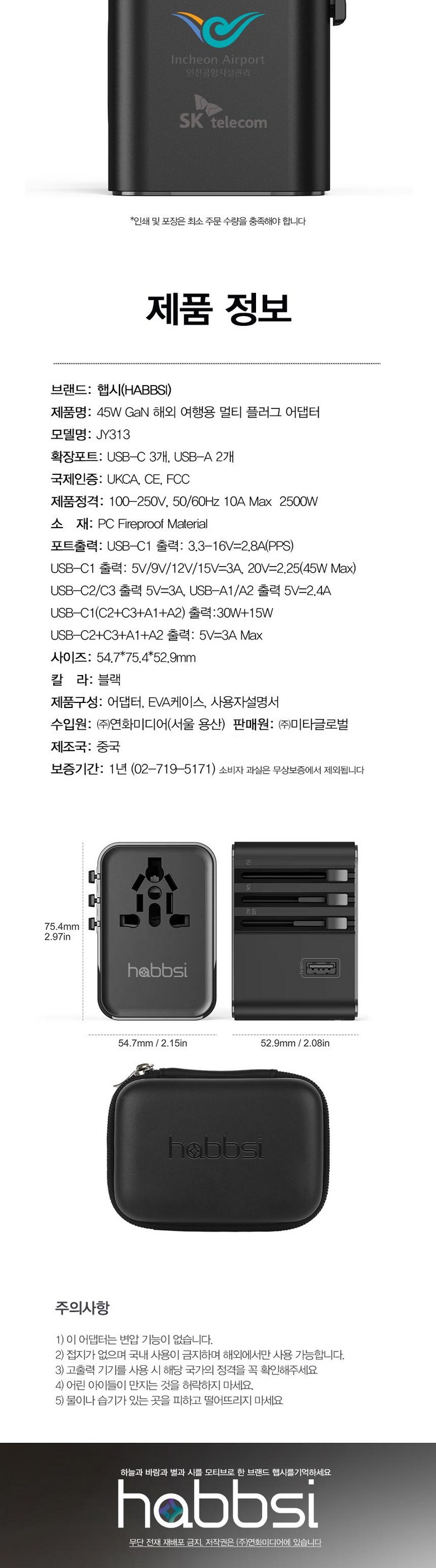 | 품명 및 모델명 | 해외여행용 멀티플러그 어댑터 | 인증/허가 사항 | 상품 상세페이지 참조 |