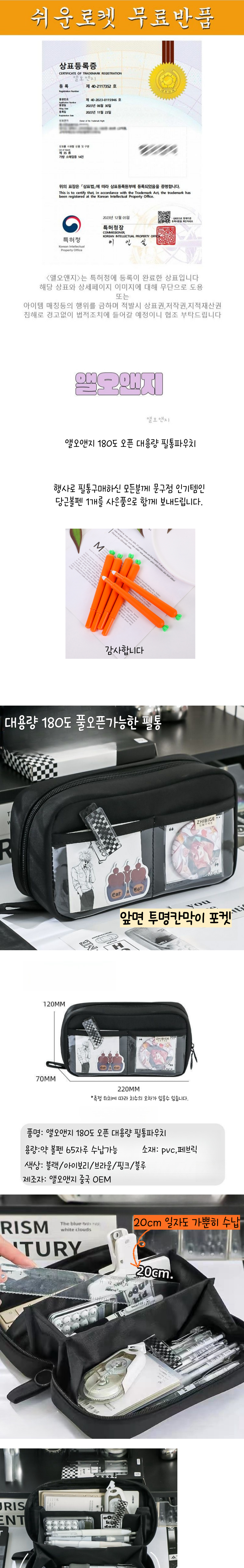 | 품명 및 모델명 | 앨오앤지 180도 오픈 대용량 필통 파우치 | 인증/허가 사항 | 상품 상세페이지 참조 |