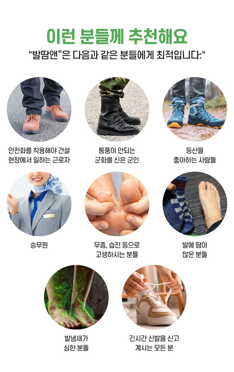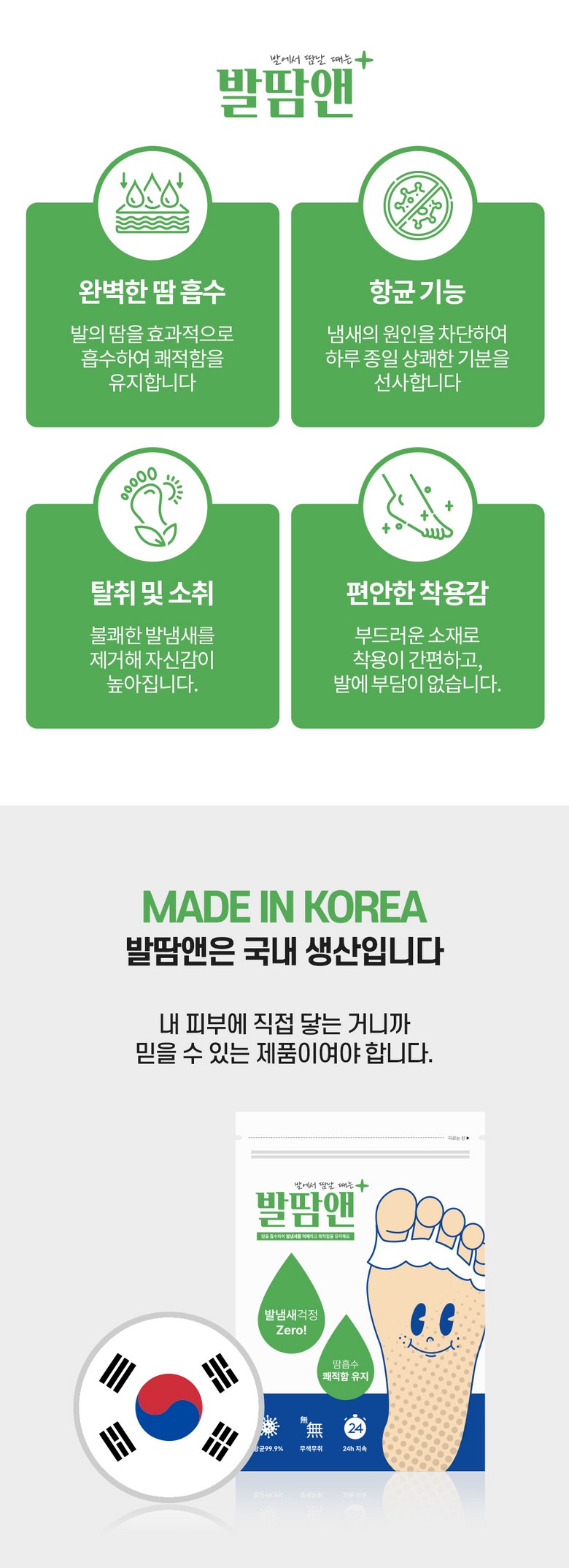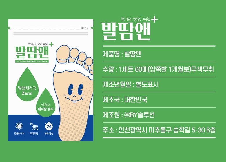 | 품명 및 모델명 | 발땀앤 | 인증/허가 사항 | 상품 상세페이지 참조 |
