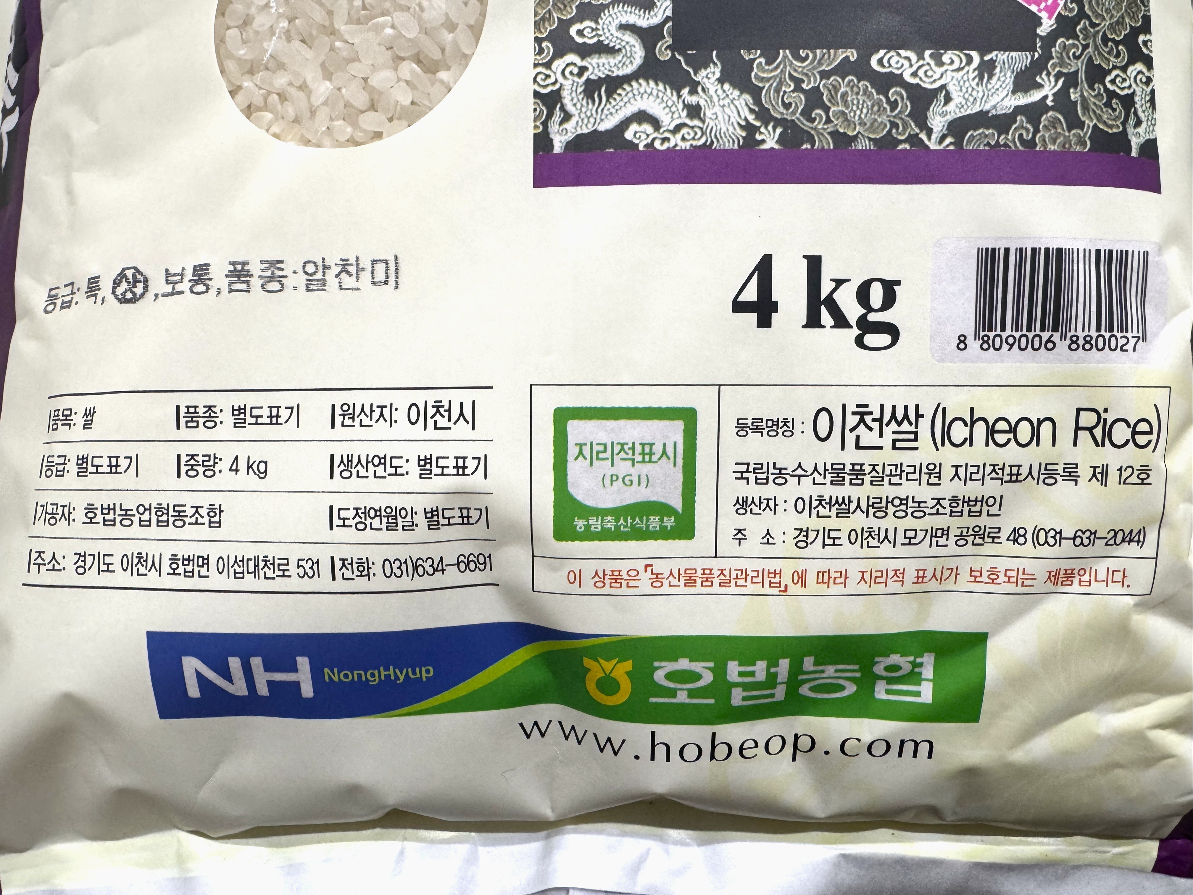 | 제조연월일, 소비기한 또는 품질유지기한 | 제조년월일 : 2026년 01월 07일 이후인 제조상품<br />생산일자 : 2025 | 세부 품목군별 표시사항 | 농수산물 : 유전자변형(해당 없음) / 지리적 표시사항(이천쌀) |