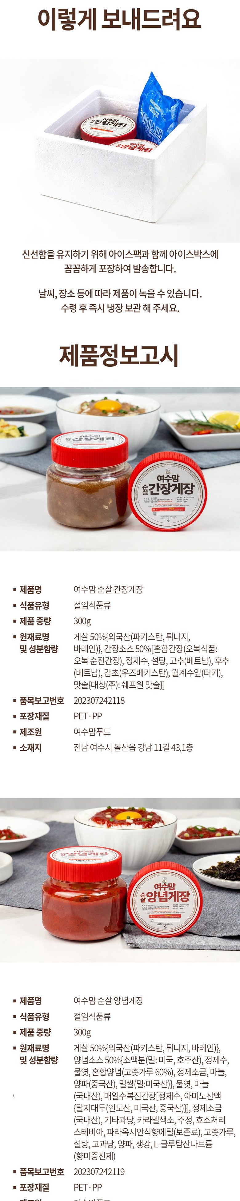 | 생산자 및 소재지 | 상품 상세페이지 참조 | 제조연월일, 소비기한 또는 품질유지기한 | 상품 상세페이지 참조 |