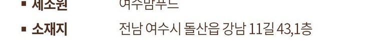 상호/대표자 | 여수맘 푸드 / 이은애 | 사업장 소재지 | 전라남도 여수시 돌산읍 강남11길 43 1층 |