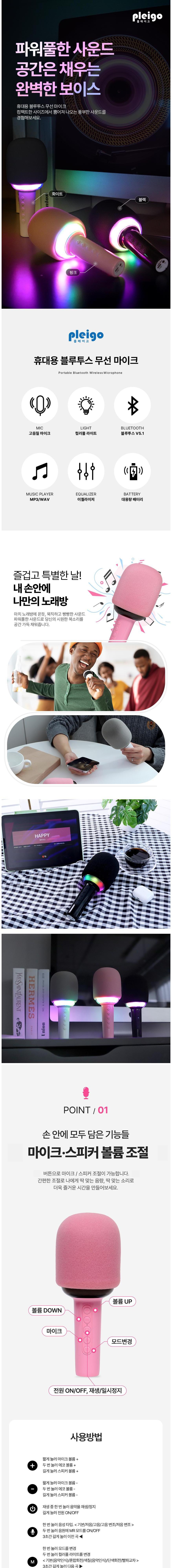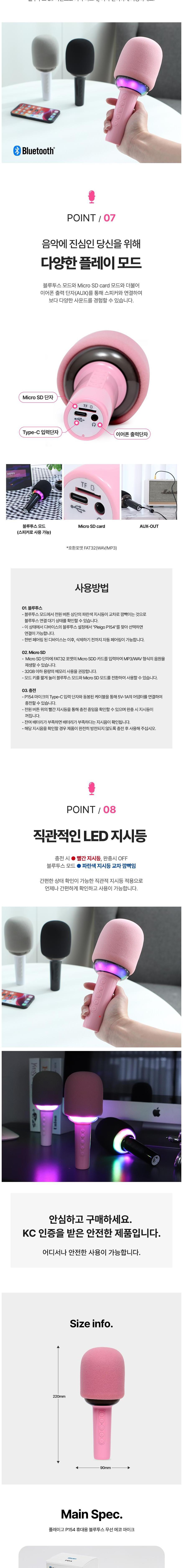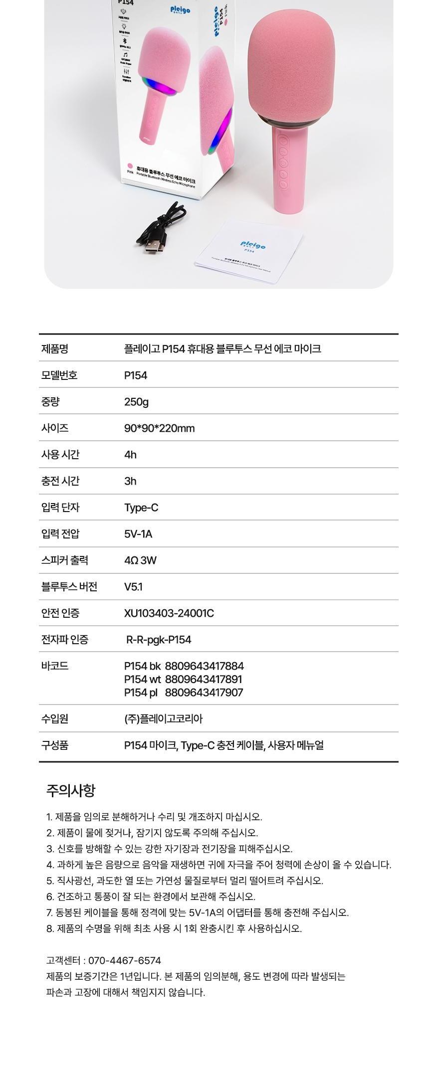 | 품명 및 모델명 | 플레이고 P154 휴대용 블루투스 LED 무선 마이크 노래방 핑크 / P154 | KC 인증정보 | 본품: R-R-pgk-P154 / 전지: XU103403-24001C |