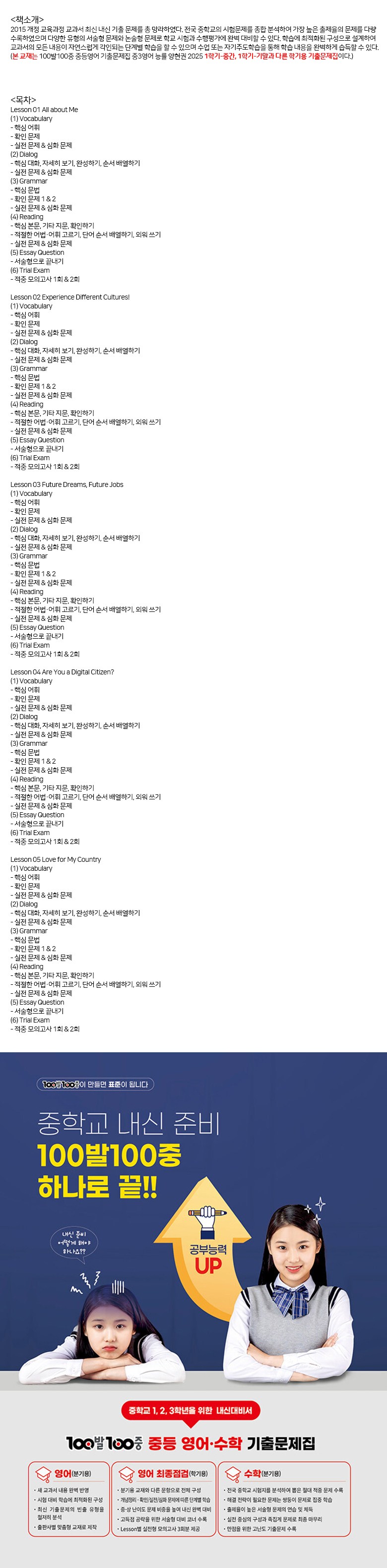 | 도서명 | [에듀원] 100발 100중 기출문제집 중등 영어 3-1 최종점검 YBM 박준언 (2025) | 저자, 출판사 | 에듀원 편집부, 에듀원 |