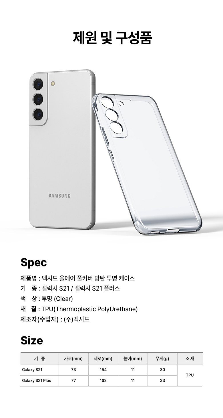| 품명 및 모델명 | 멕시드 올에어 카메라 특화 풀커버 젤리 휴대폰 케이스 / AAIR | 인증/허가 사항 | 해당없음 |