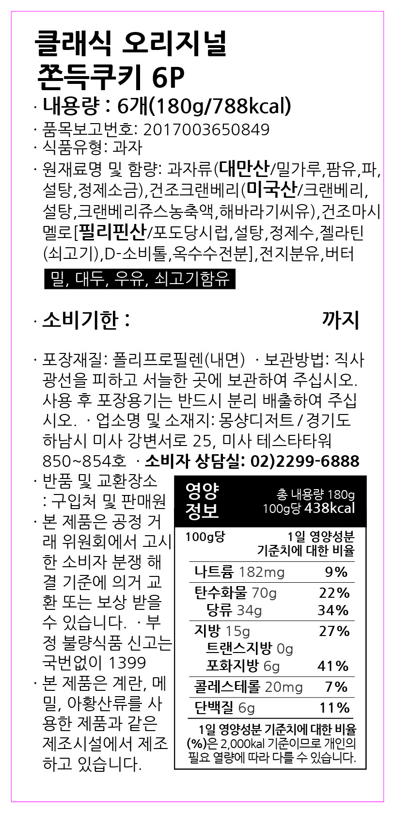 - 과자 종류: 과자/쿠키/비스킷