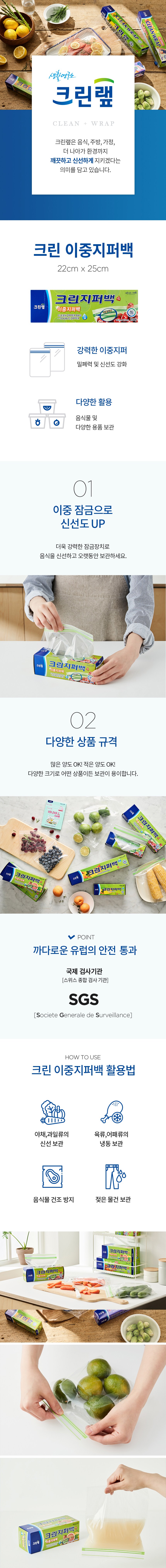 | 품명 및 모델명 | 크린랲 크린 이중 지퍼백 중 22 x 25 cm | 재질 | LDPE |