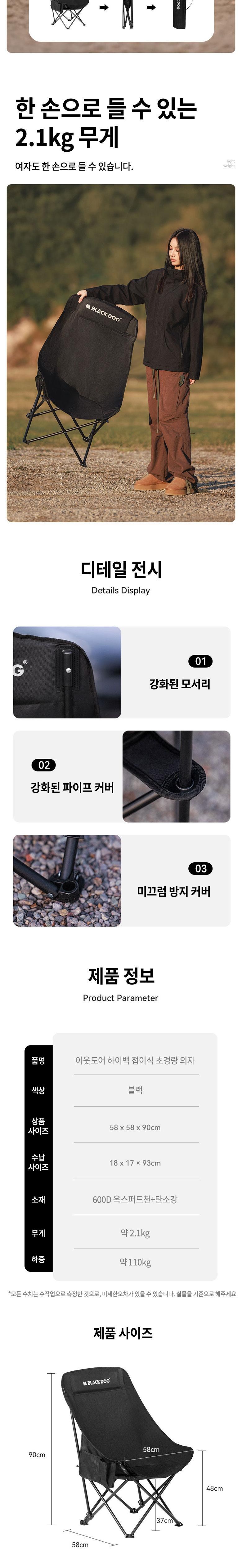 BLACKDOG 야외용 접이식 초경량 휴대용 캠핑의자 CBD2300JJ026