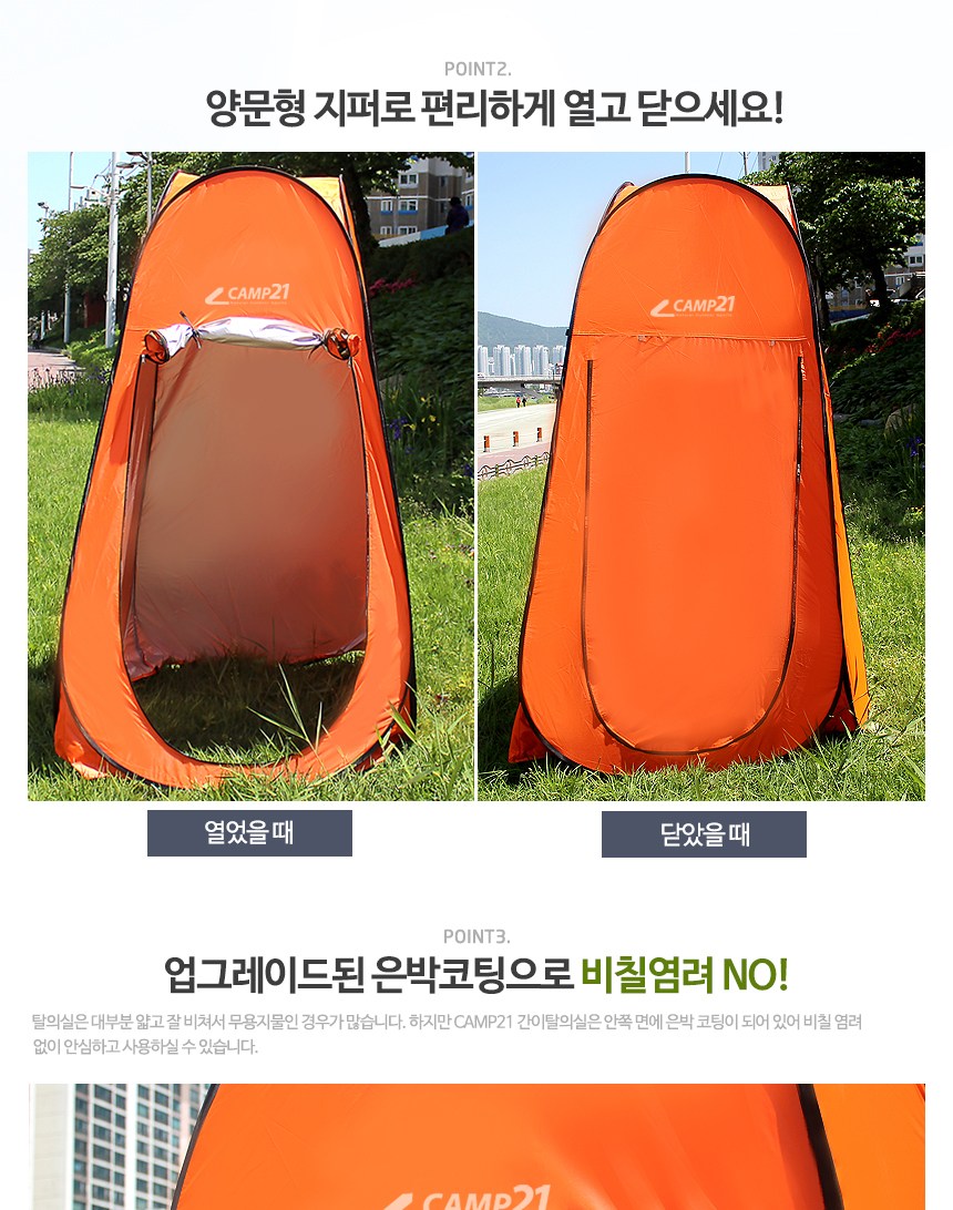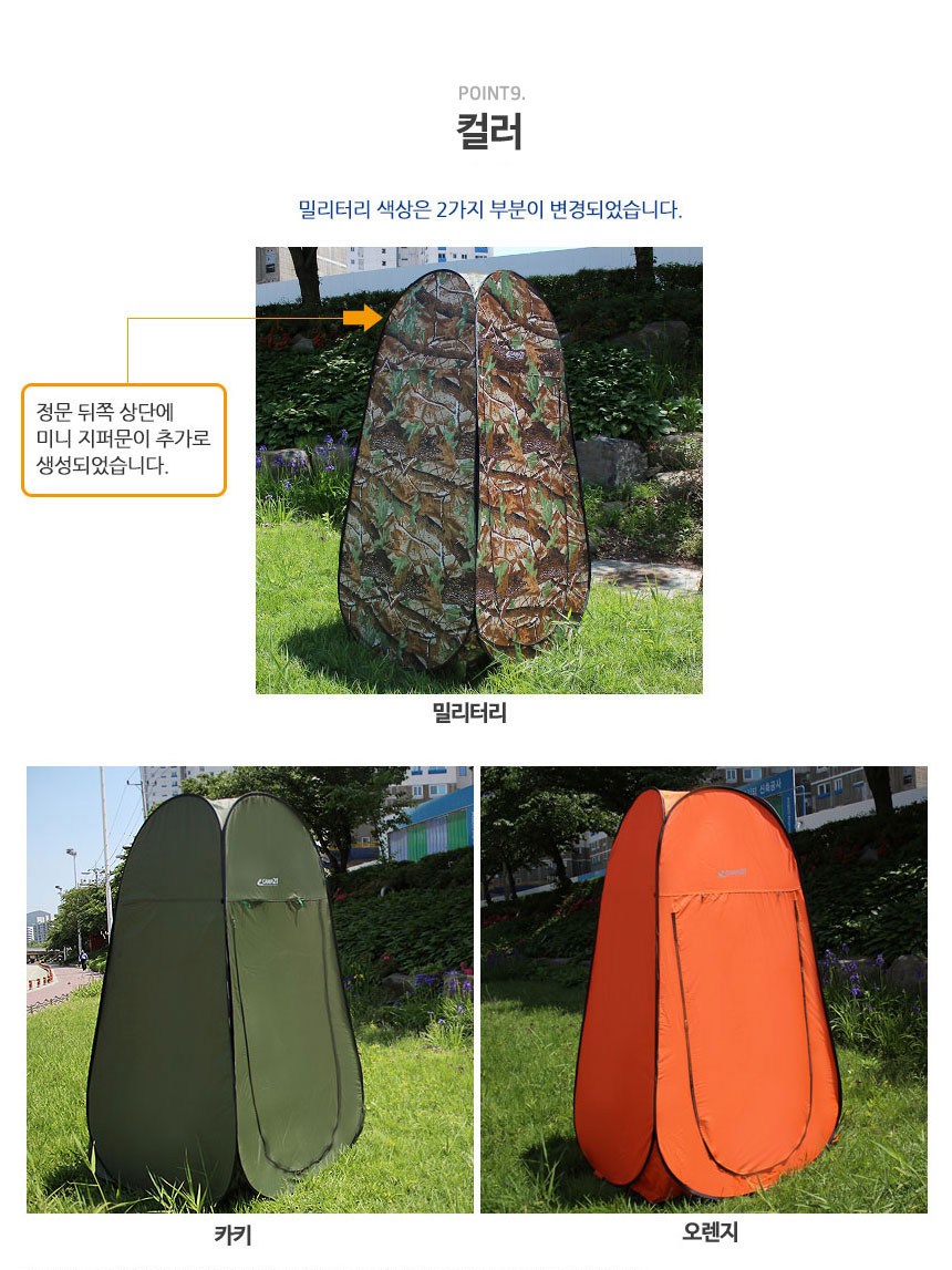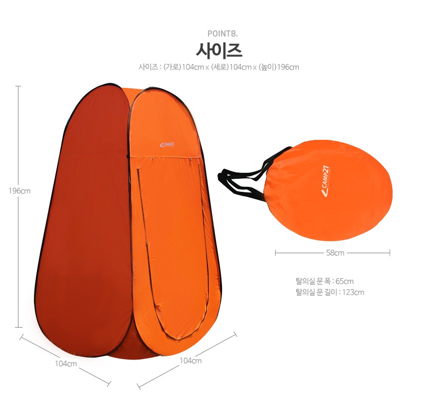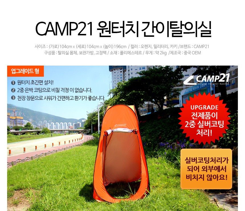 | 품명 및 모델명 | CAMP21 원터치 간이탈의실 카키 | KC 인증정보 | 해당없음 |