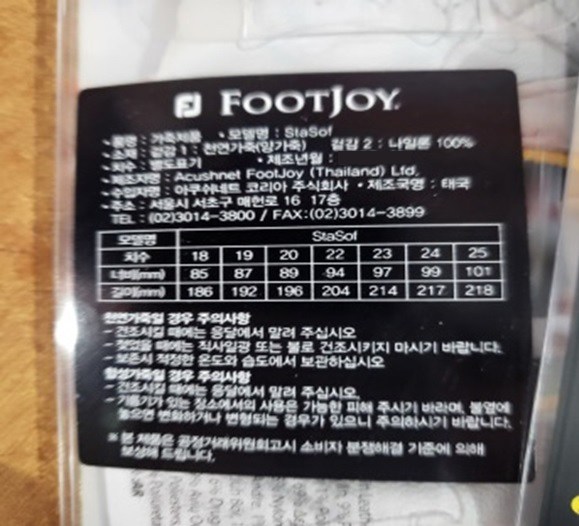 | 품명 및 모델명 | 풋조이 뉴 스테이소프 양피 골프장갑, 22호 | KC 인증정보 | 해당없음 |
