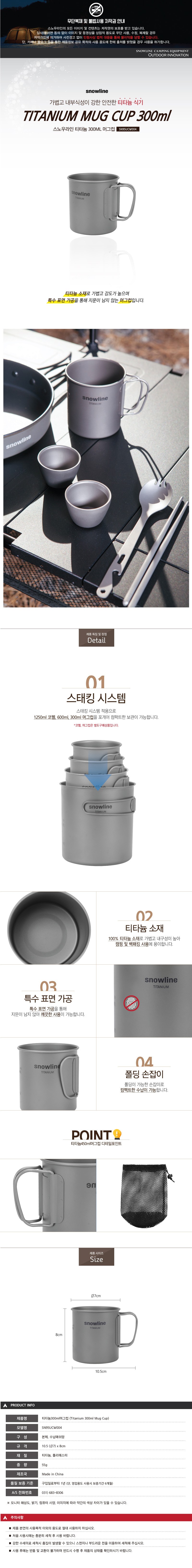 | 품명 및 모델명 | 스노우라인 티타늄 머그컵 | 재질 | 컨텐츠 참조 |