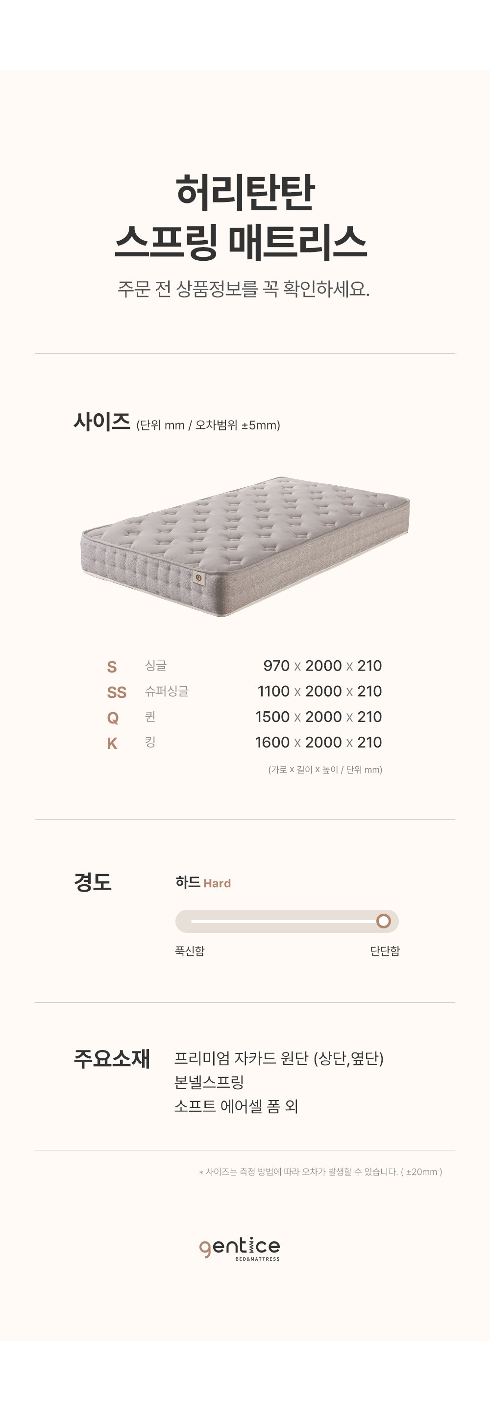 | 품명 | 젠티스 허리탄탄 본넬 스프링 매트리스 S | KC 인증정보 | 해당없음 |