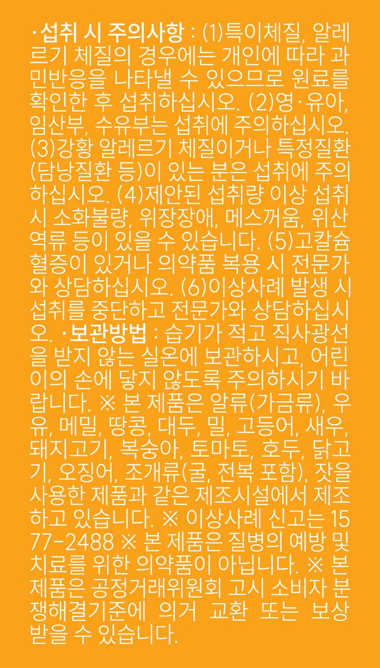 | 소비기한 및 보관방법 | 소비기한(또는 유통기한) : 2027년 11월 27일 이거나 그 이후인 상품 제조년월일 : 2025년 12월 08일 이후인 제조상품 보관방법: 컨텐츠 참조 | 포장단위별 내용물의 용량(중량), 수량 | 상품 상세페이지 참조 |