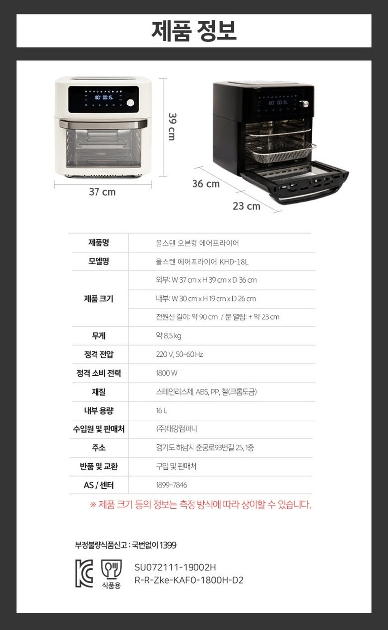 | 품명 및 모델명 | 상품 상세페이지 참조 | KC 인증정보 | 상품 상세페이지 참조 |