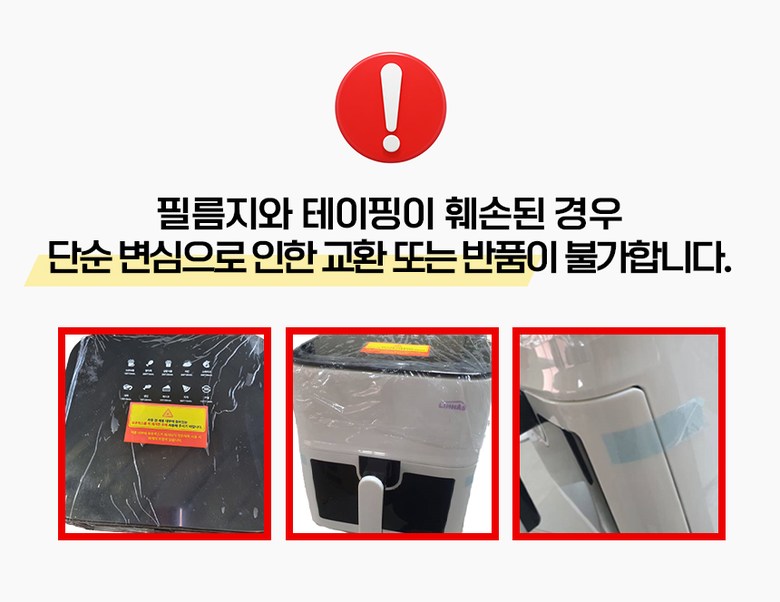 - ㆍ모니터 해상도의 차이로 인해 색상이나 이미지가 실제와 달라, 고객이 단순 변심으로 교환/반품을 무료로 요청하는 경우
