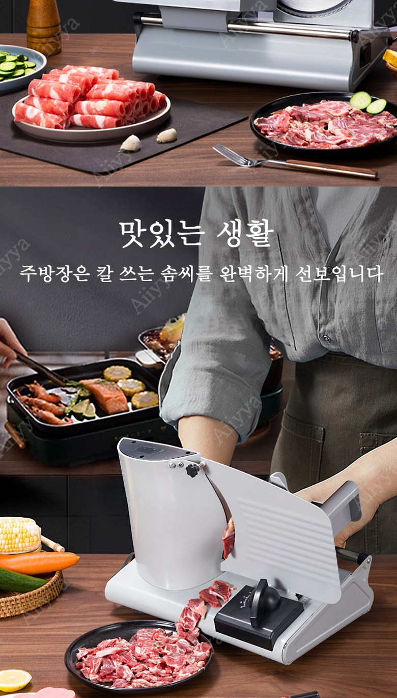 Aiiyya 전자동 육절기 만능 전동 탁상용 고기 절단기 냉동 대패삼겹살 절편기 업소용 가정용 슬라이서 샤브샤브 써는 커터기 컷팅기 220W 고출력