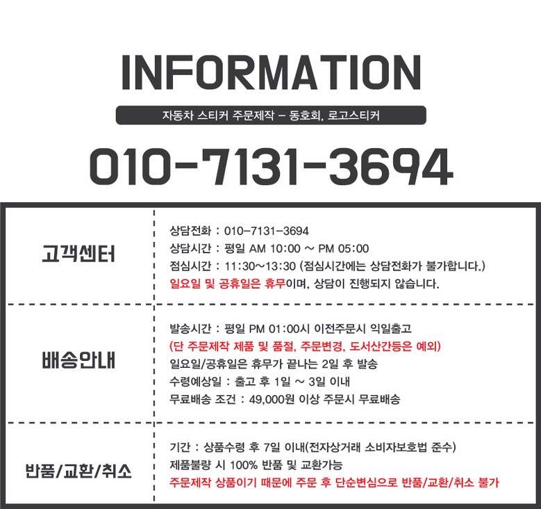 - ㆍ교환/반품에 관한 일반적인 사항은 판매자가 제시사항보다 관계법령이 우선합니다.
