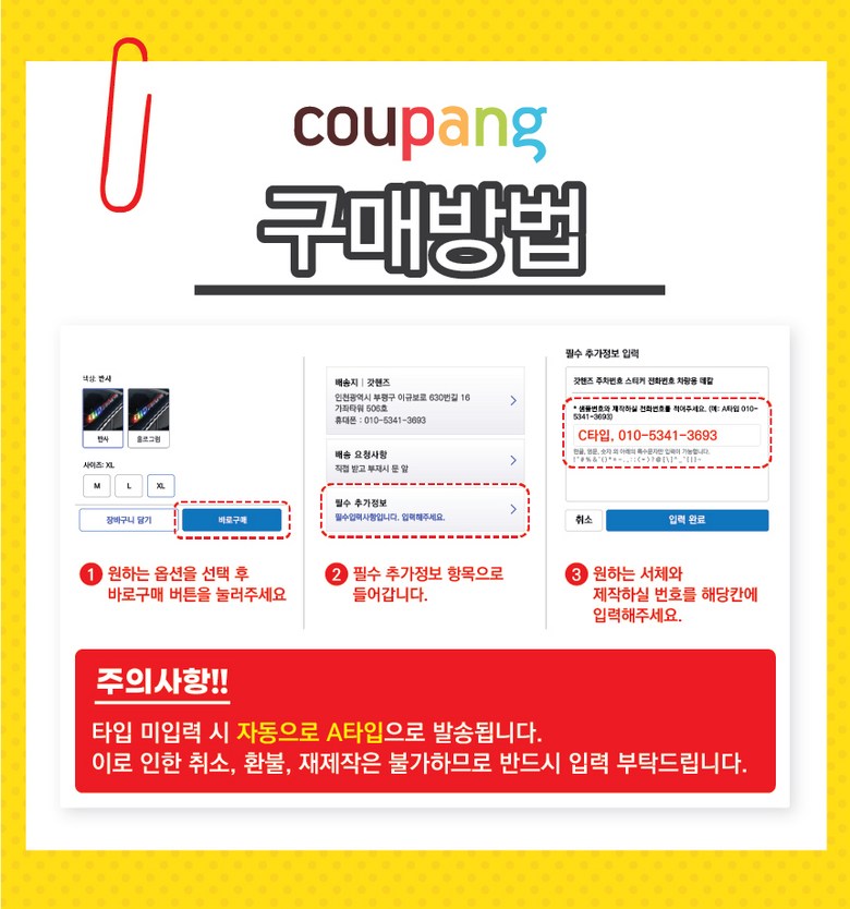 - 구매한 상품의 취소/반품은 마이쿠팡 구매내역에서 신청 가능합니다.