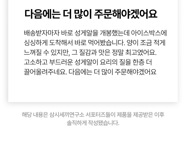 | 배송방법 | 신선/냉장/냉동 | 배송비 | 무료배송 - 도서산간 지역 배송불가 |