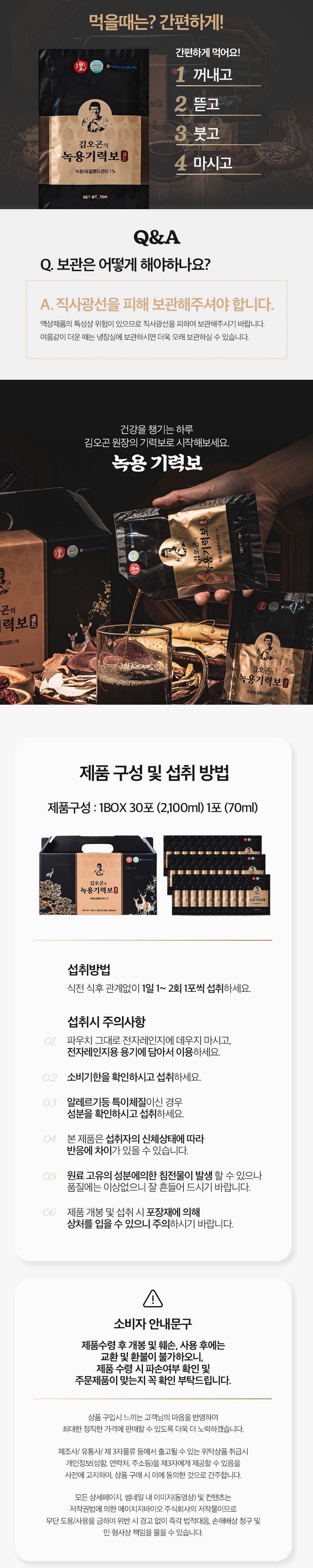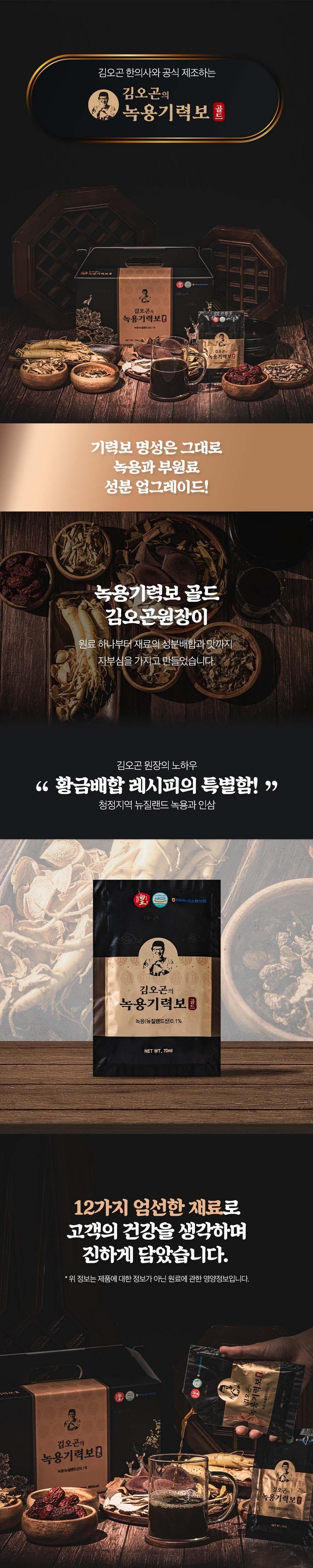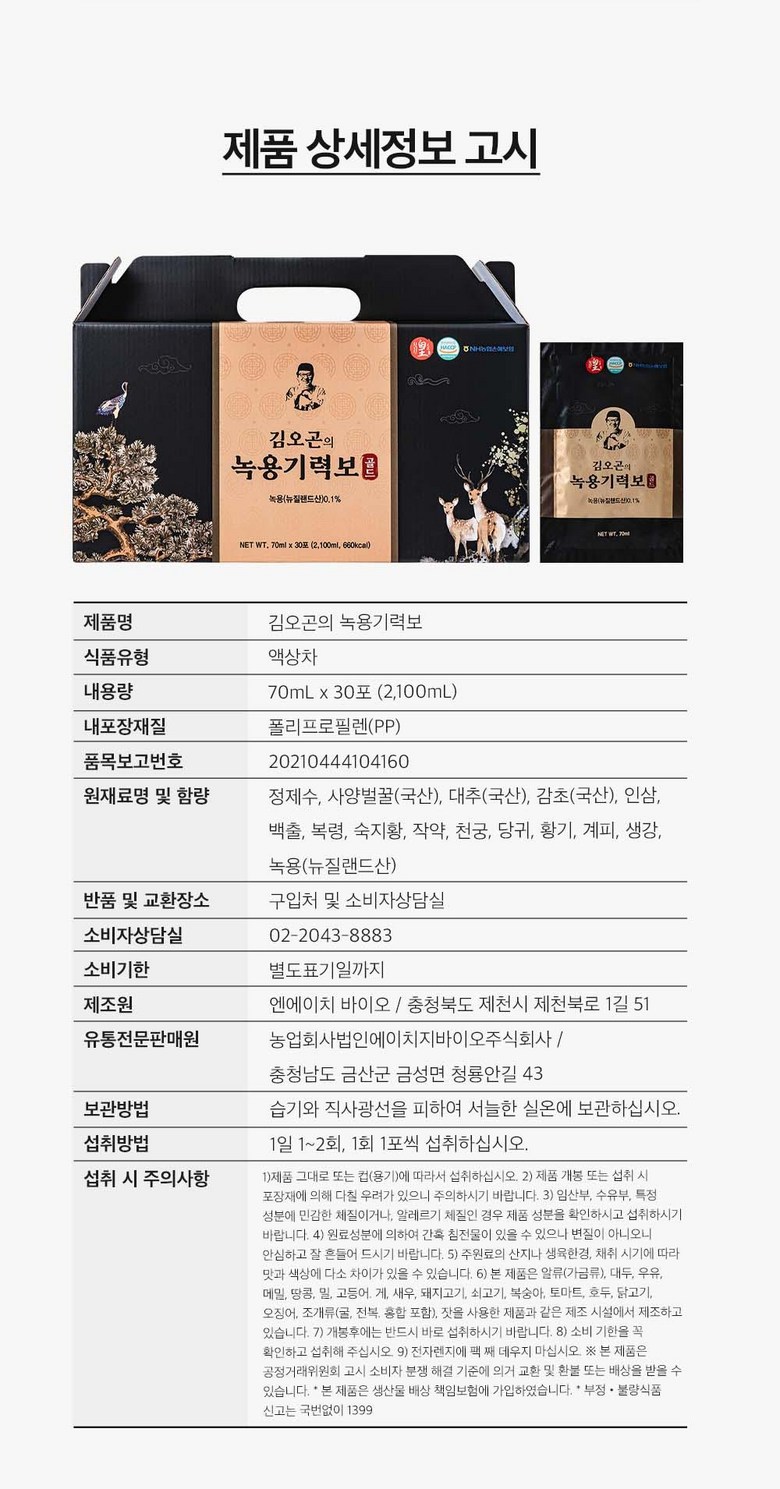 | 제품명 | 김오곤의 녹용기력보 골드 | 식품의 유형 | 액상차 |