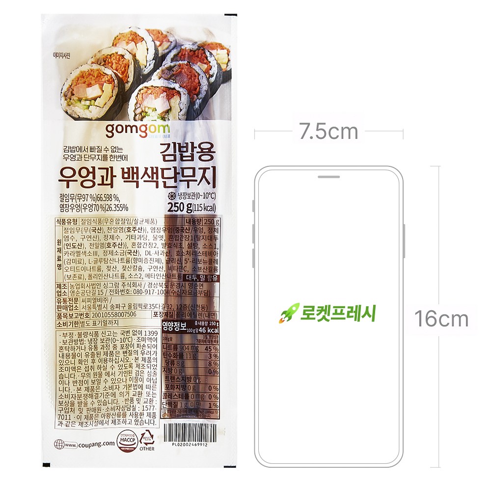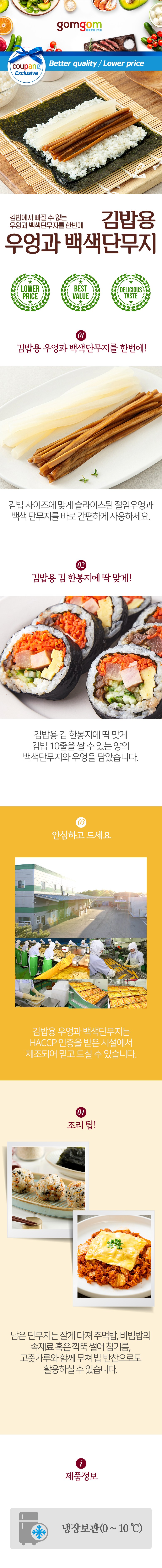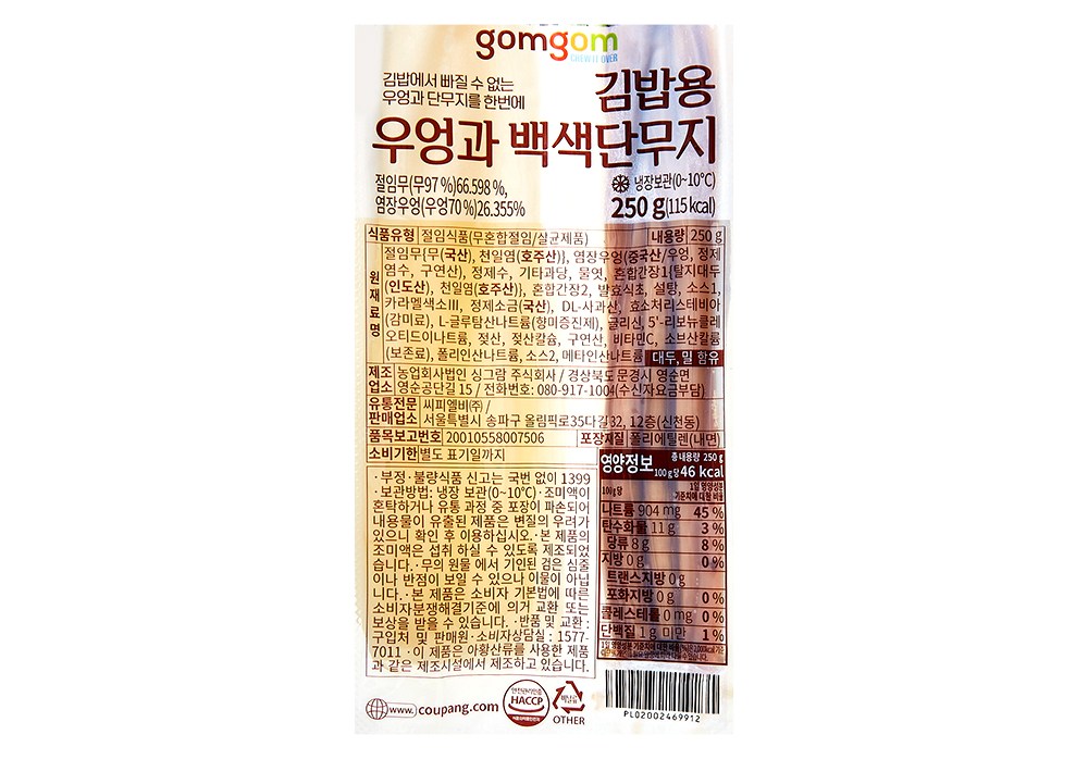 | 제품명 | 김밥용 우엉과 백색단무지 | 식품의 유형 | 절임식품 |