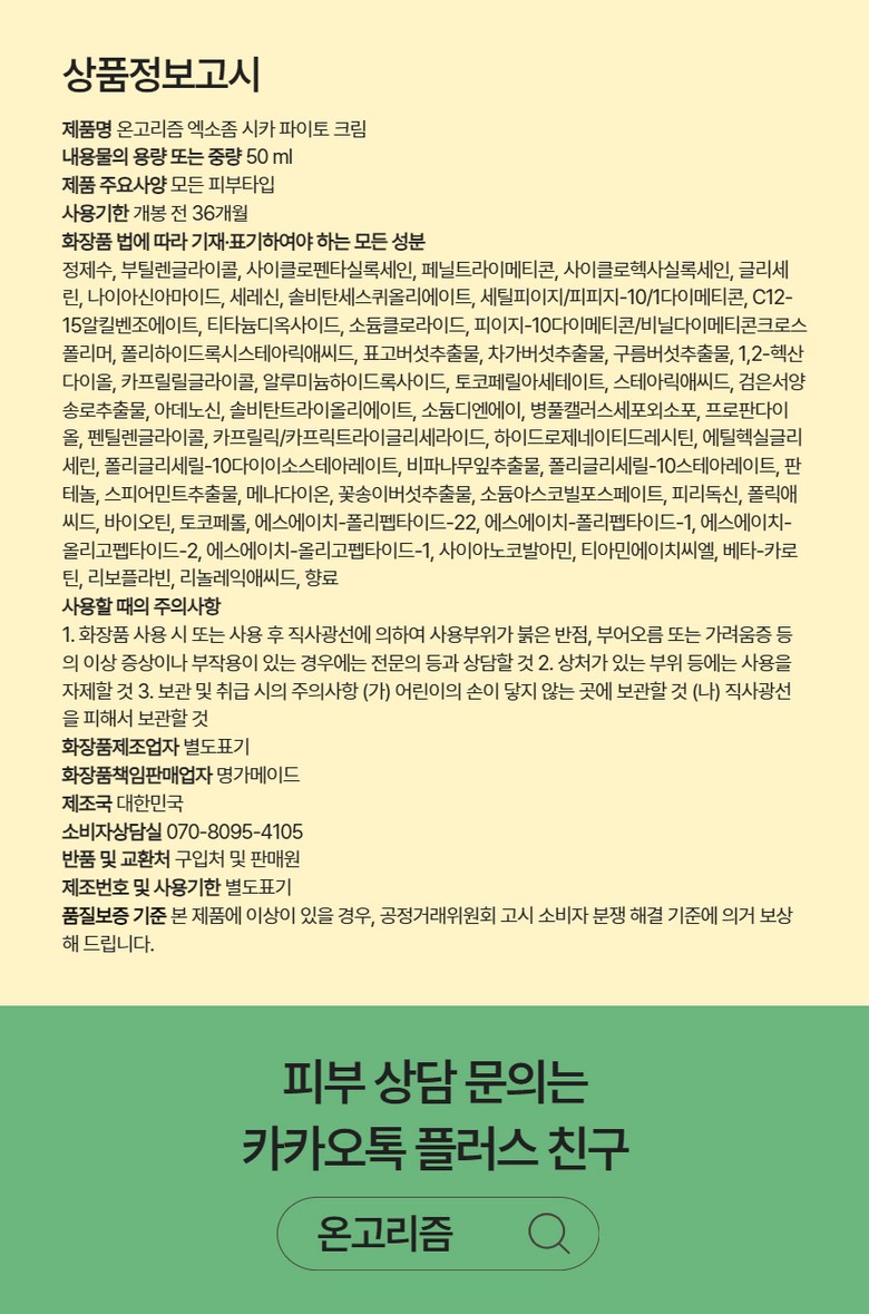| 화장품제조업자, 화장품책임판매업자 및 맞춤형화장품판매업자 | 상품 상세페이지 참조 | 제조국 | 상품 상세페이지 참조 |