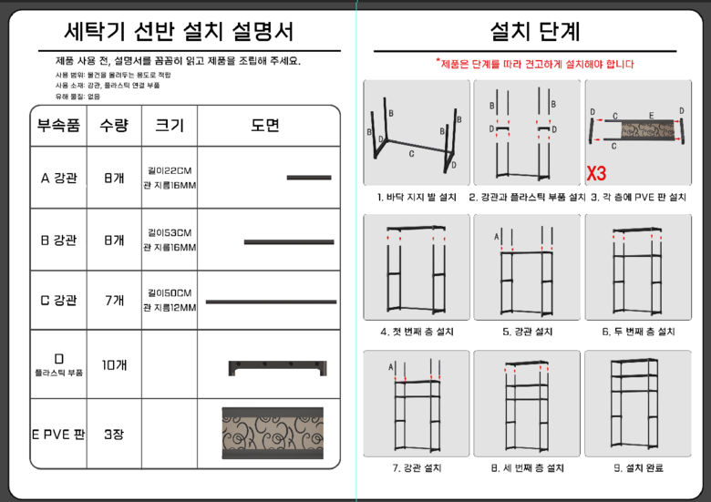 | 품명 및 모델명 | 세탁기선반 | 인증/허가 사항 | 해당없음 |