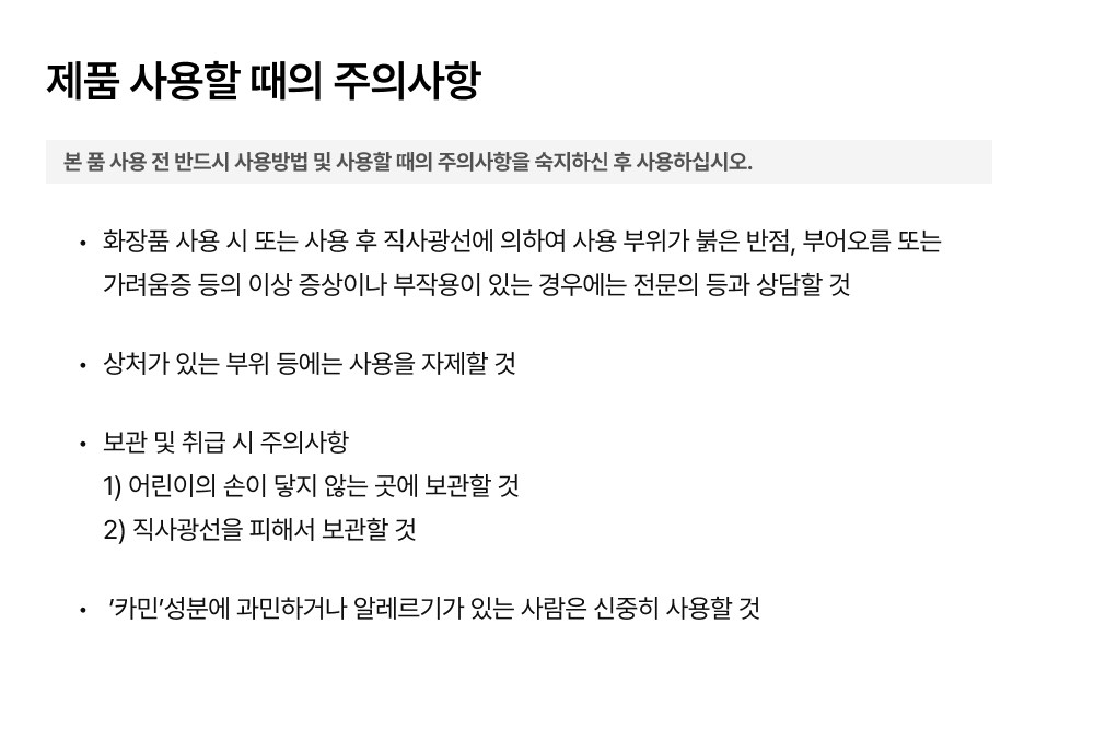 | 용량(중량) | 컨텐츠 참조 | 제품 주요 사양 | 모든 피부용 |