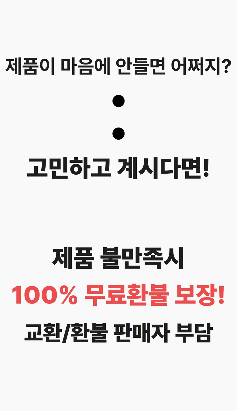 - ㆍ모니터 해상도의 차이로 인해 색상이나 이미지가 실제와 달라, 고객이 단순 변심으로 교환/반품을 무료로 요청하는 경우