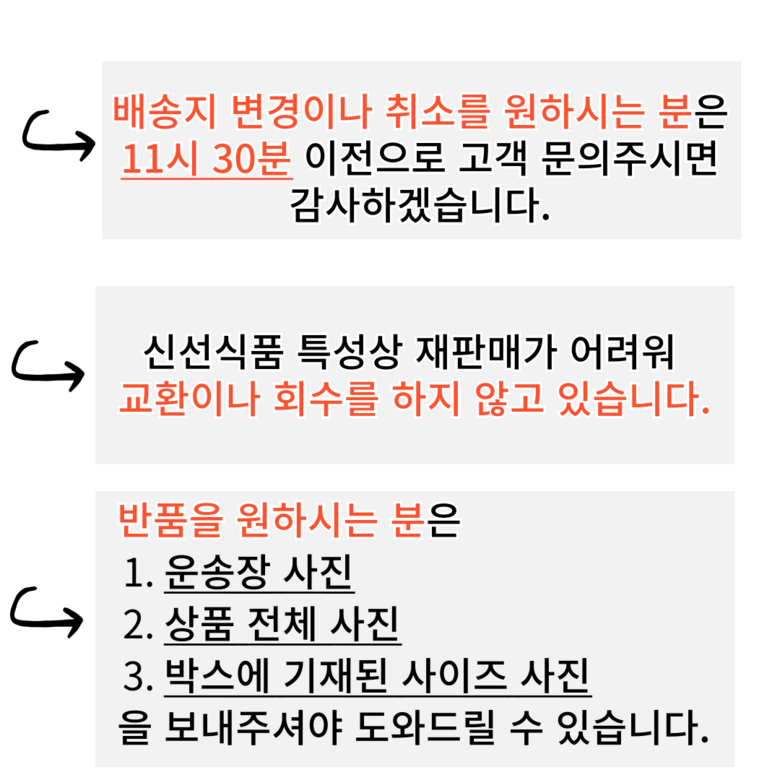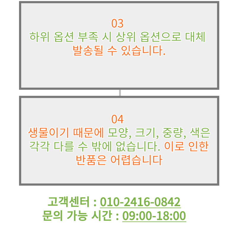 | 배송방법 | 신선/냉장/냉동 | 배송비 | 무료배송 - 도서산간 지역 배송불가 |