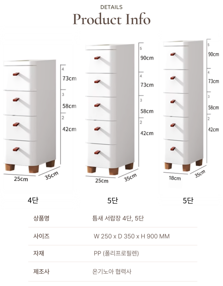 | 품명 및 모델명 | 온기노아 틈새 수납장 서랍장 수납 거실 주방 냉장고 약 서랍장 | 인증/허가 사항 | 해당 사항 없음 |