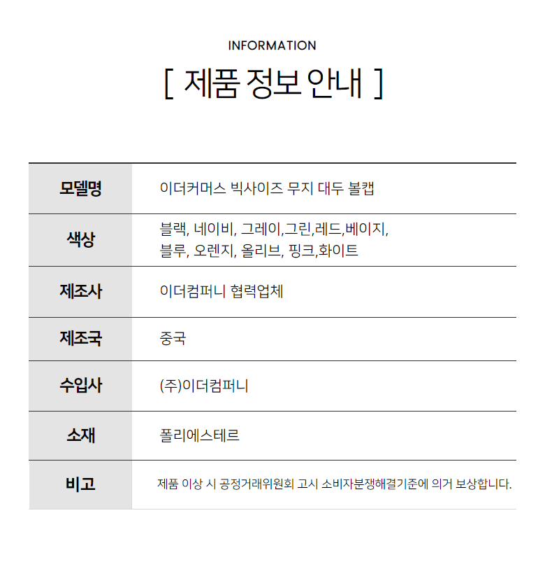 - ㆍ교환/반품에 관한 일반적인 사항은 판매자가 제시사항보다 관계법령이 우선합니다.